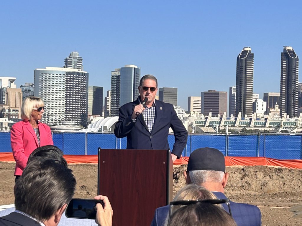 Dec. 2, 2025. Coronado Mayor John Duncan speaks ahead of the groundbreaking for the new Social Syndicate restaurant coming to the Ferry Landing. Photo: The Coronado Times