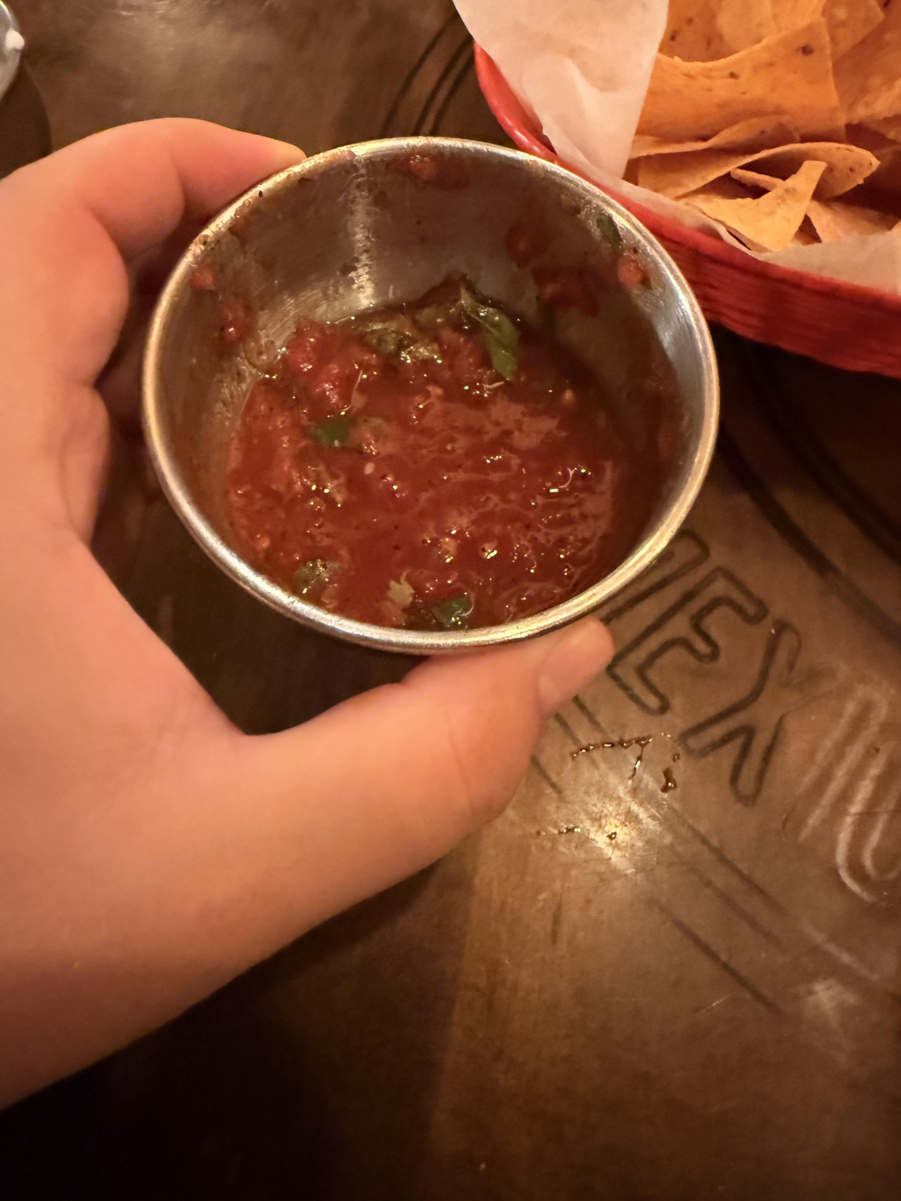 It’s not too blended, has diced white onion, and the cilantro isn’t too finely chopped.