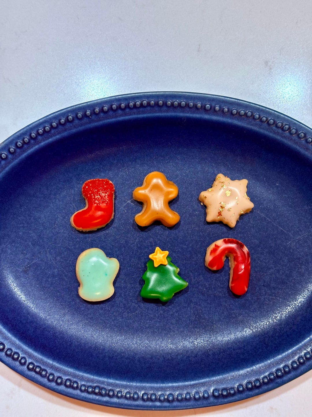 I made these tiny sugar cookies using the Sally’s Baking Addiction sugar cookie recipe and her easy cookie decorating icing. I just dipped the cookies in. Wondering how to stop the icing from getting the indents in the centres?