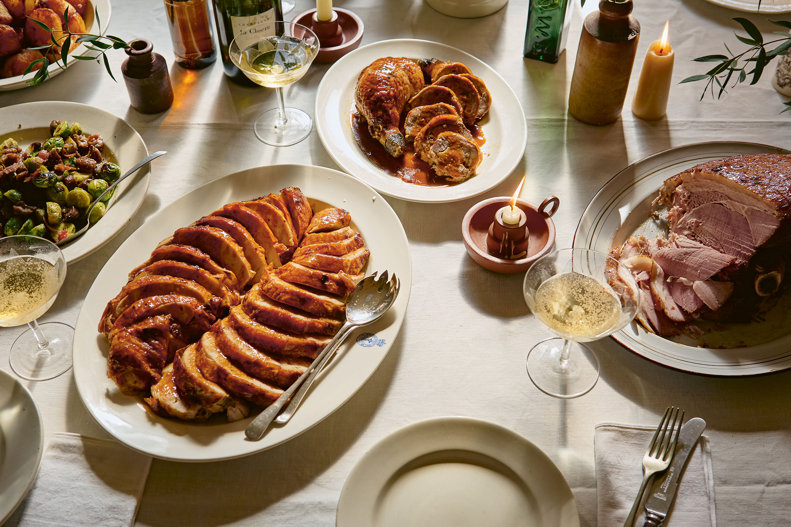As for the turkey, he has a cheffy confession: “I sous-vide my turkey.” It’s the one day of the year he uses the technique, he says, but this year he tested and wrote a failsafe roast recipe for home cooks. And his number one Christmas tip? “Make the gravy the day or even three days before. I know it’s obvious, but have as many things pre-prepared as possible, because for a lot of people, actually putting the turkey in the oven is quite a job.”
