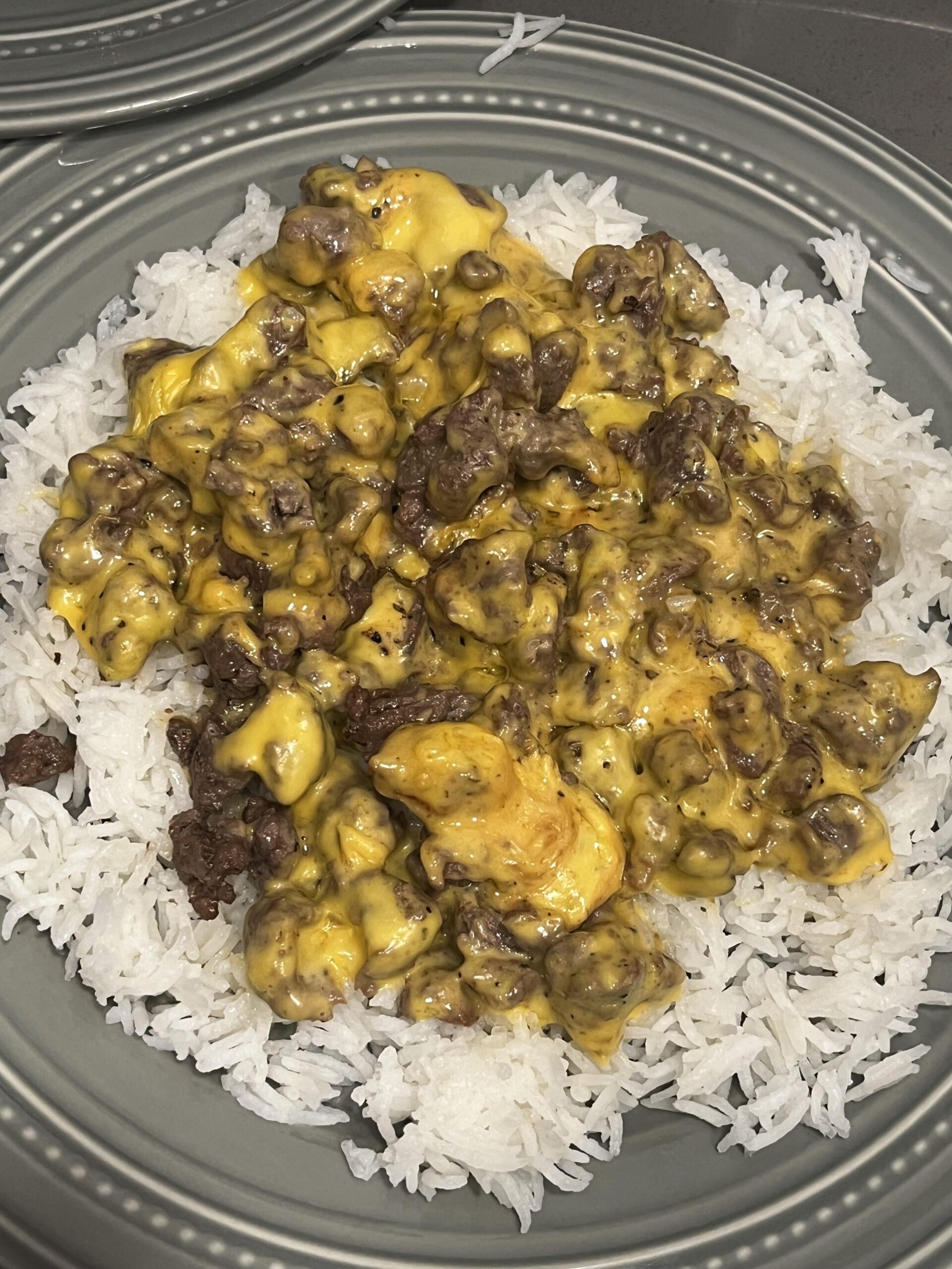 My parents used to do hamburger gravy on rice and this is damn similar except you swapped out gravy for cheese and I am here for it. Definitely want to make now.