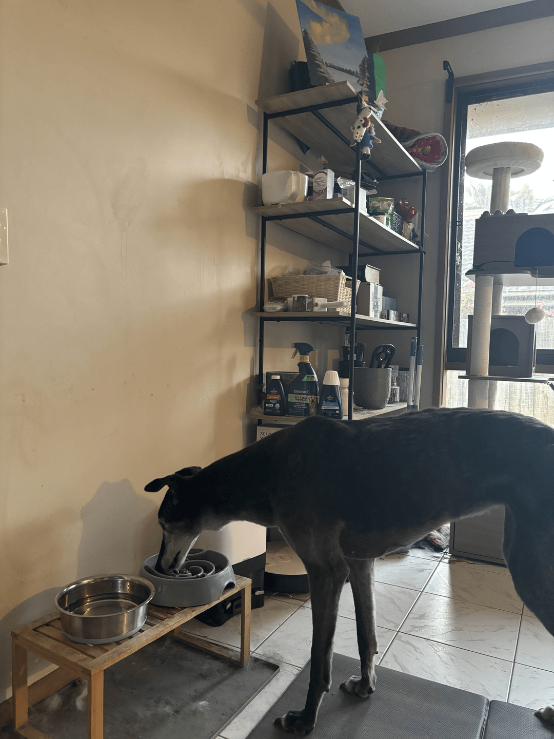 Lampshade, the 12 year old greyhound, has had her last dinner.
