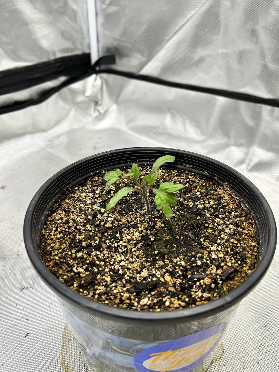 I’m wondering if growing indoors during the cold season will help the plant resist diseases longer than being in the normal outdoor growing season environment. Plus I’m curious how full strength Jack’s will turn out. There are a lot of variables here, but it should be a fun and interesting experiment regardless. Best case we get tasty brandywines during the off season, worse case it’s a fun experiment. I’ll try to update this regularly and also when I reach the usual milestones… hopefully I’ll remember to manually pollinate when the time comes😅 Oh, and I plan to support the plant with tomato hooks.