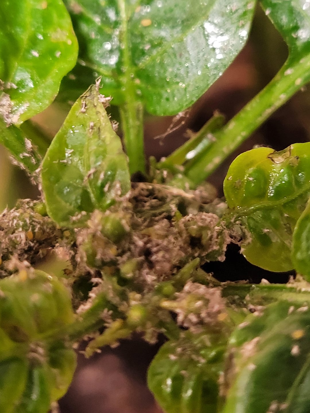 5. I had an aphid problem on my peppers that were inside growing. I had a spray bottle with a little dawn and some vegetable oil, and it seems to have helped. I sprayed the plant a few times a week. Before I did this, I took them outside, trimmed the leaves, and used my air compressor to try to blow some off. Make sure you don’t have the pressure cranked up to high or you’ll be missing more leaves.