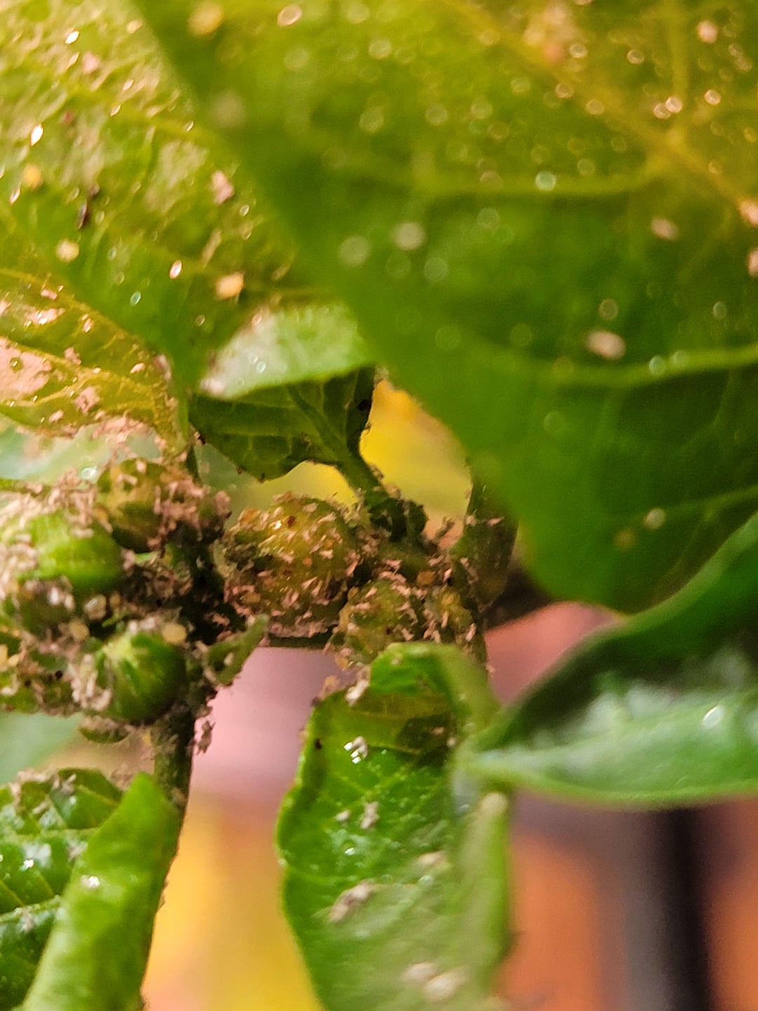 However, over the past few days I've noticed these spots all over pretty much every plant, but I'm not sure what they are. I know that it's not an infection since they are on top of the leaves, buds, etc.