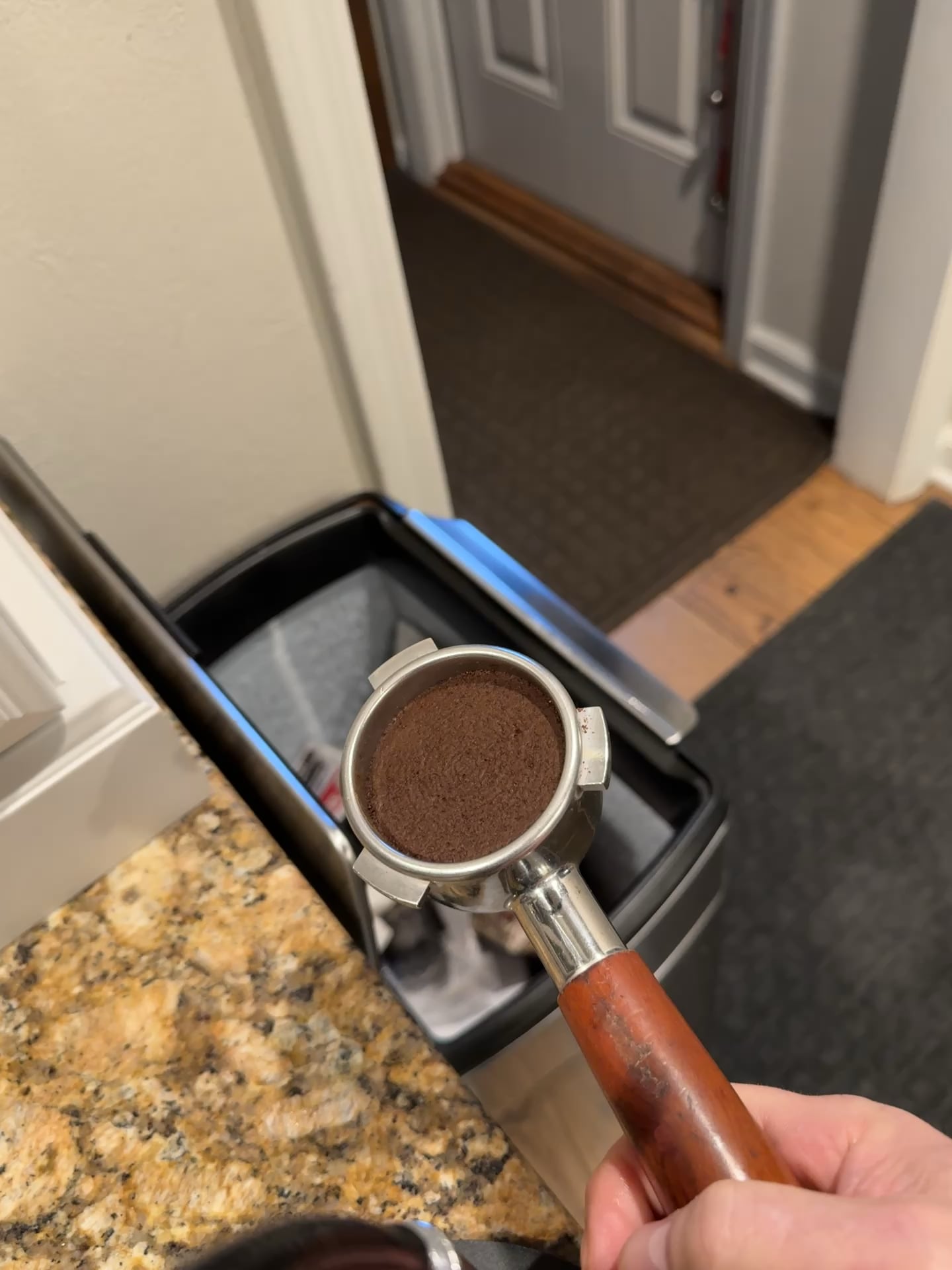 Looks to me like your puck press isn’t ideal as that thing looked way too slushy (and loose) in your porter filter. If I tried that I’d be swinging for days. Mine always needs a knock to get it out, even right after I’ve pulled the shot
