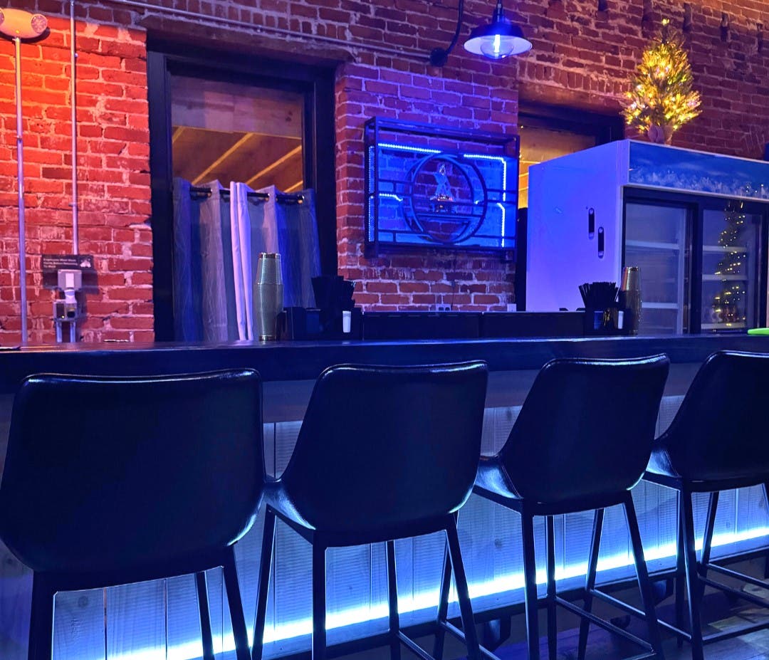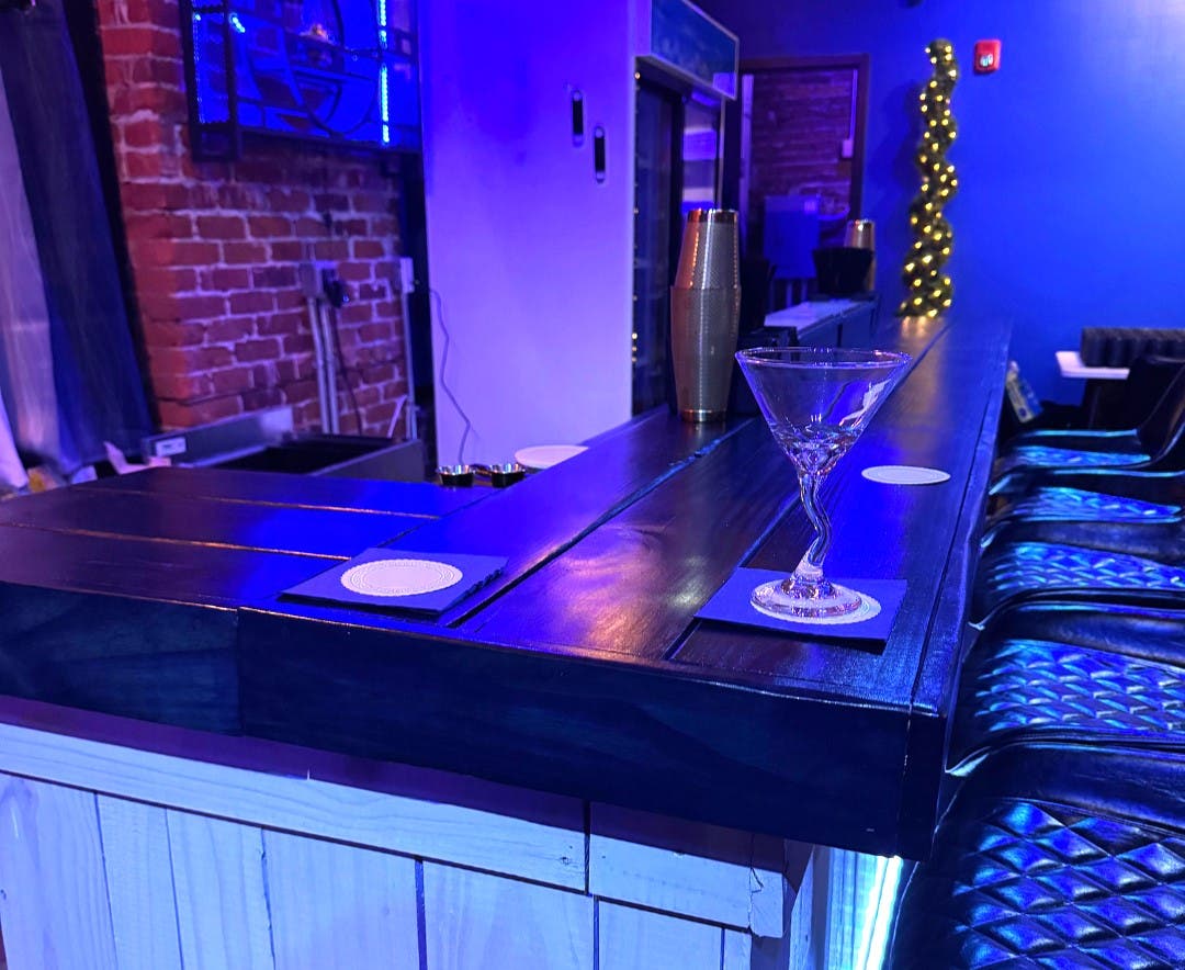 Azur is the first and only full-service restaurant inside the Trolley Barn, offering guests a refined Mediterranean atmosphere featuring exposed brick, soft blue lighting, a modern bar, and a warm, intimate dining room. With its own private entrance, Azur will