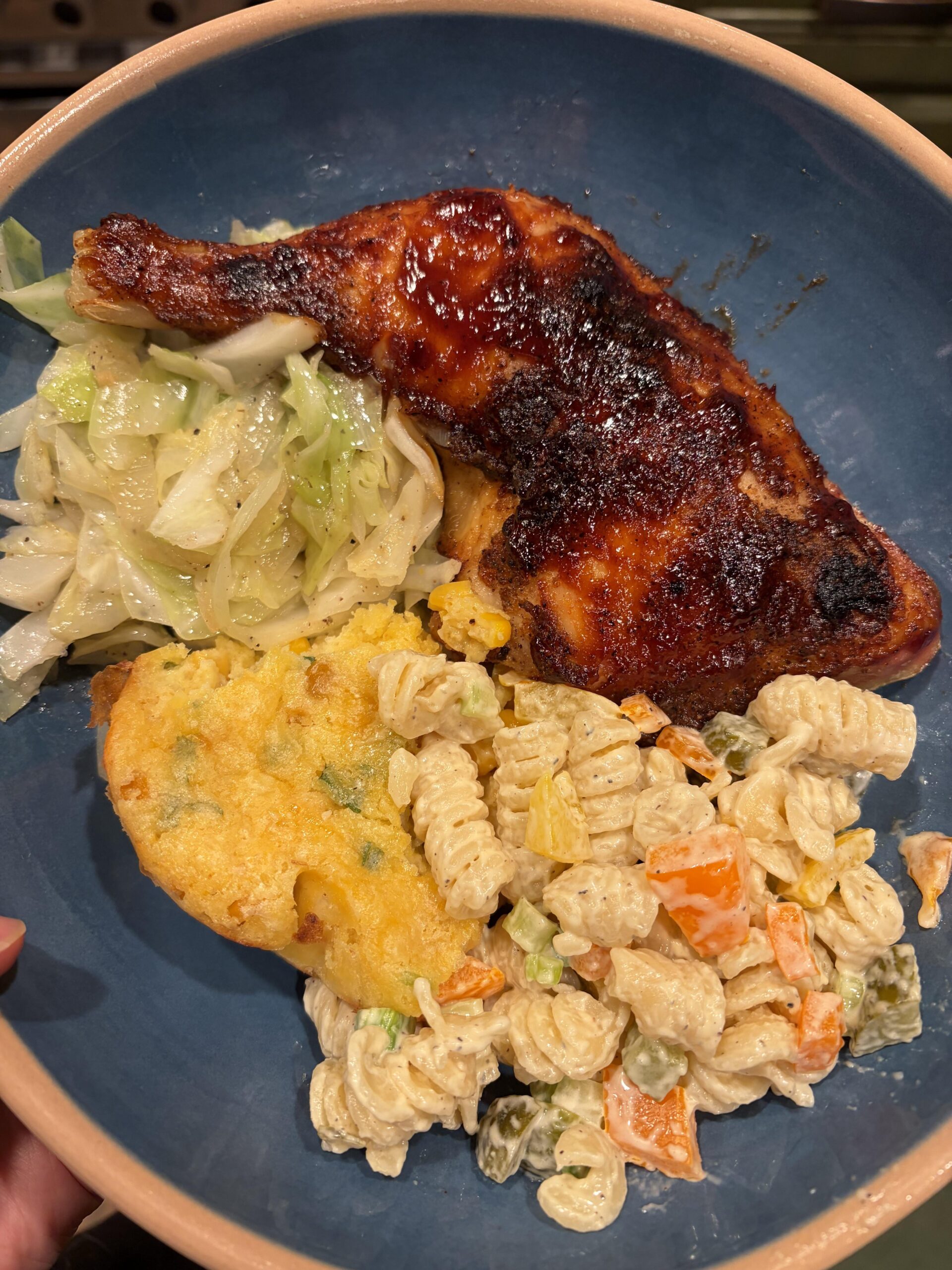 Bbq chicken, pasta salad, corn casserole, and fried cabbage for dinner tonight by livw17 1 Comment Oaf7724 3 months ago This looks amazing! Comfort food x10. Would devour.