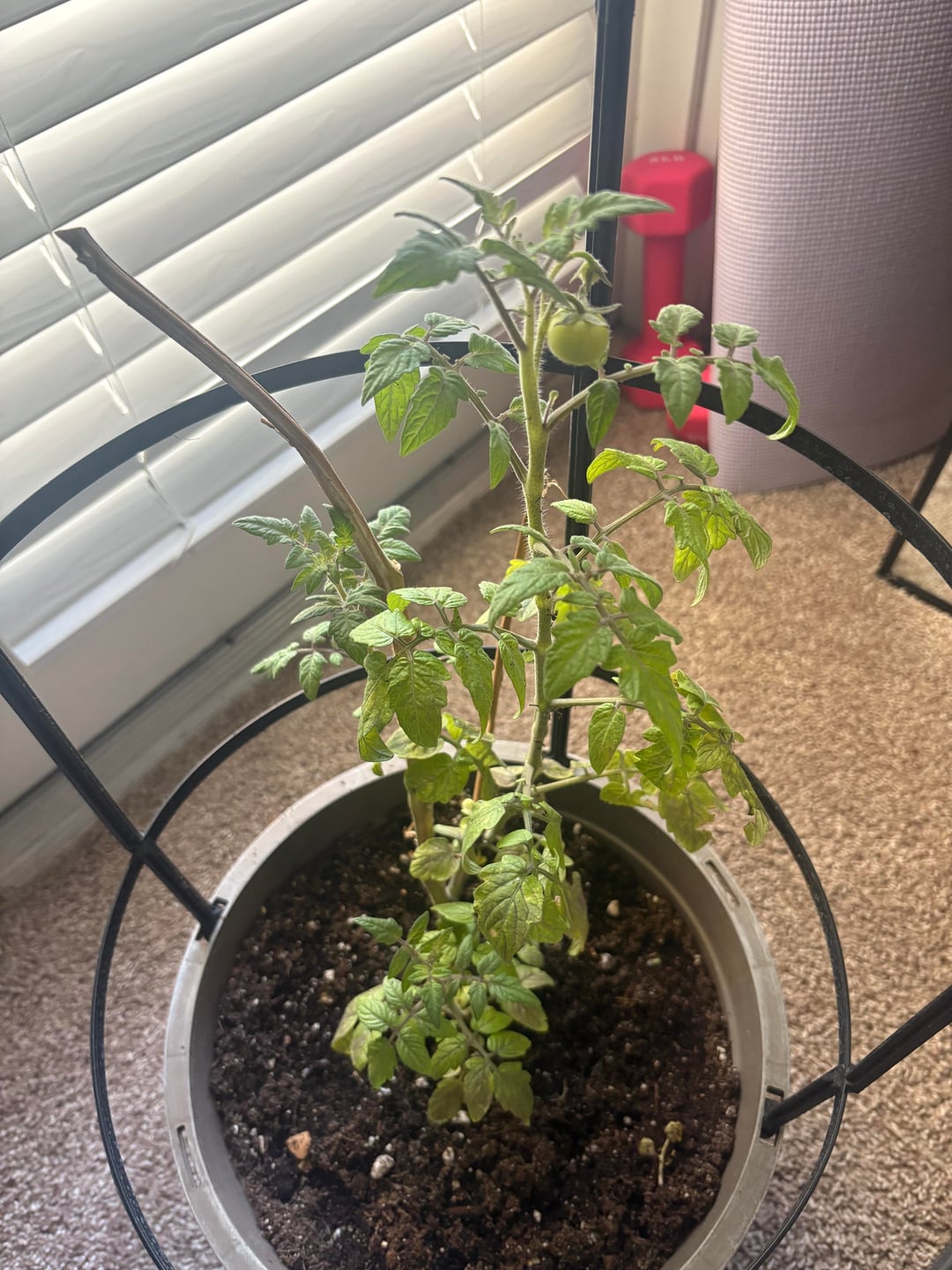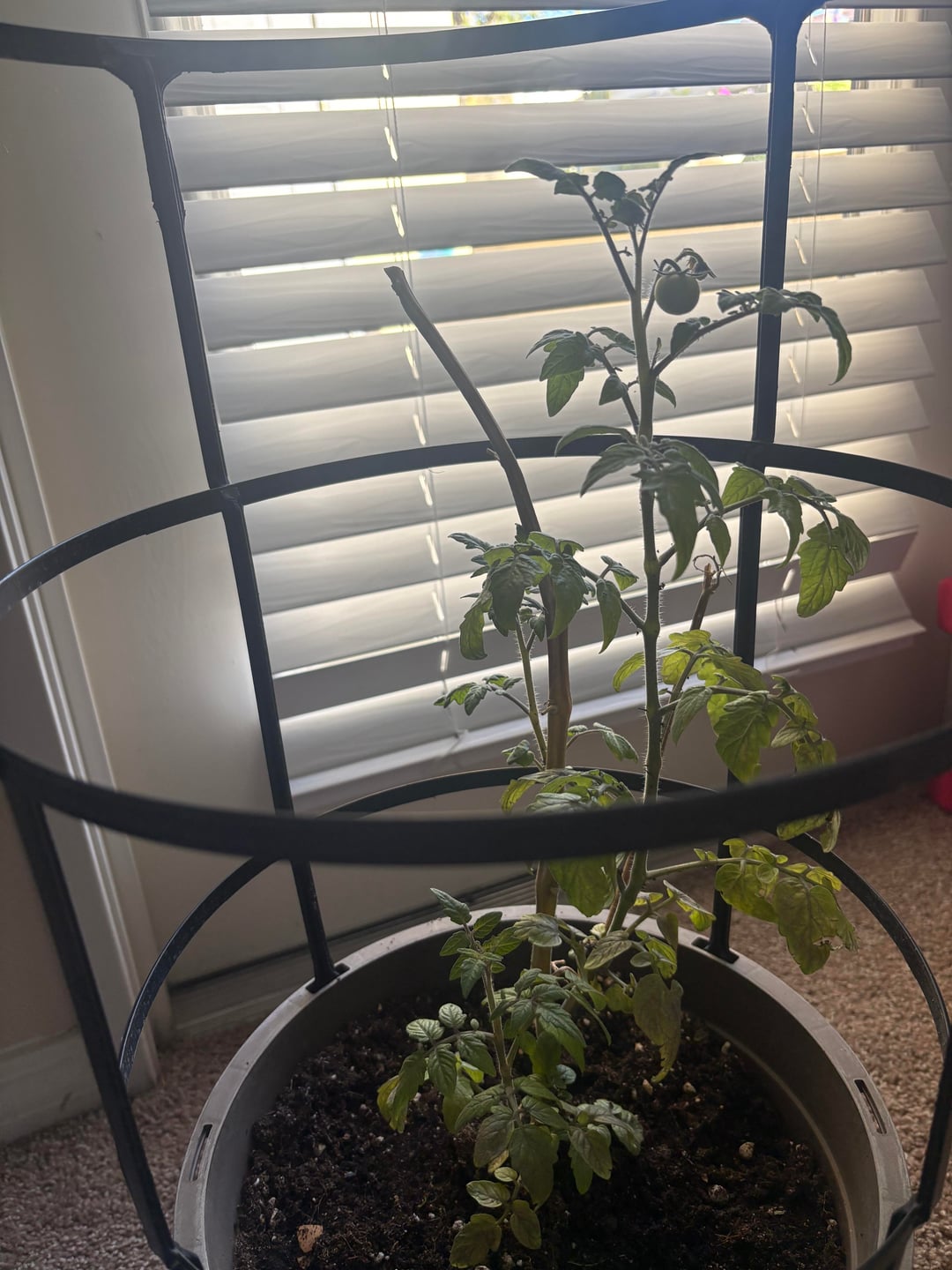 I’m not sure what tomatoes I have. I’ve had this for a while and it was dead for most of the year as of recently it’s been growing back. Can I get your guys‘s opinion on how it looks I’m really surprised that it’s growing. By the way, I have an inside because it’s been really windy and cold where I live and it keeps knocking over outside