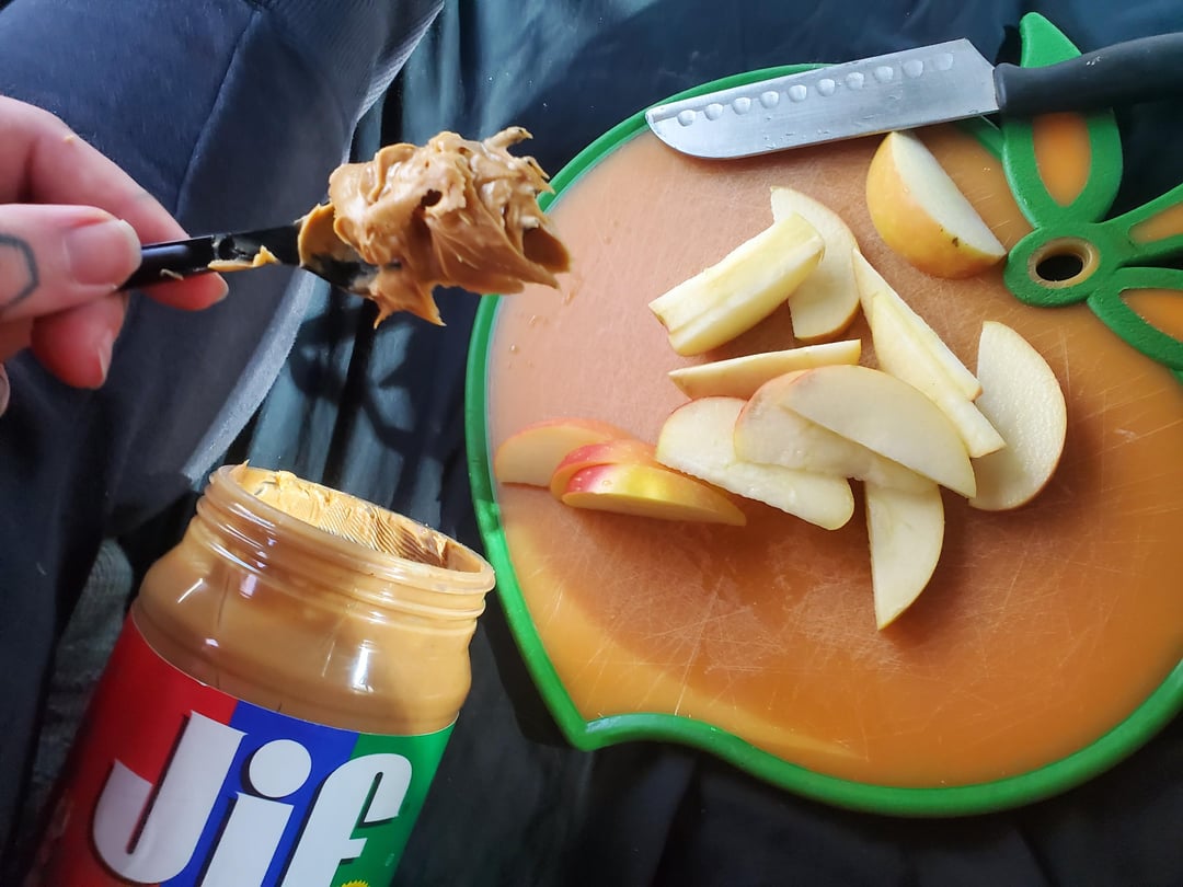 been living in my car a few weeks now and this is what i've been eating. got a 12v water boiler in the mail yesterday tho so i can add instant noodles, couscous, and instant potatoes to the rotation 😃