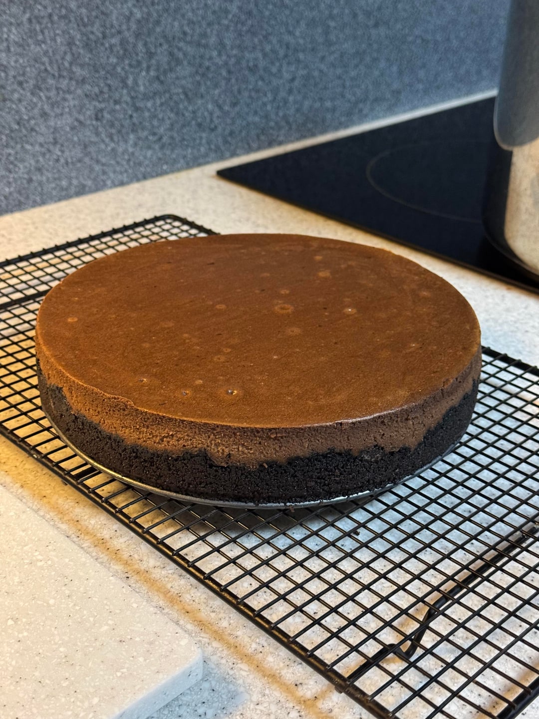 She’s done. She’s a beaut. Covered in ganache. Daughter made a choc mousse- will probably top it with that, too. Chocolate peppermint cheesecake. Supposed to cover with chopped candy cane but I can’t do it.