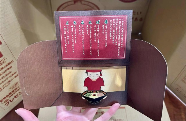 Upon receiving the Ume lucky bag, the first thing that stuck out to her was the box’s original design, which incorporated elements from the “Ramen Focus Booth” in which individual customers sit to enjoy their meals.