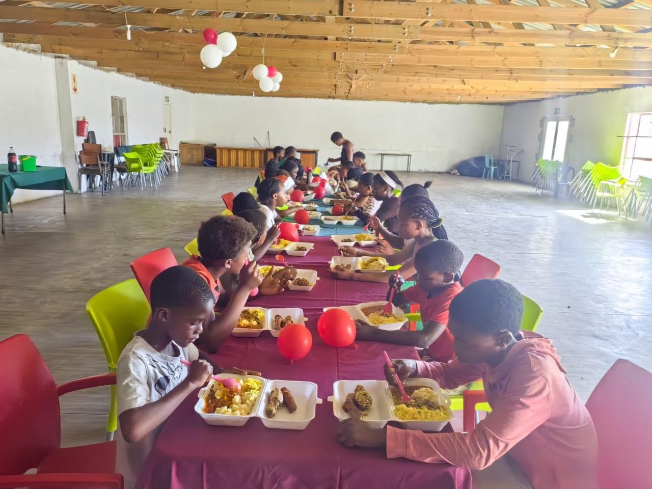 During the celebration, the children enjoyed a special three-course meal and later received Christmas gifts and food parcels.