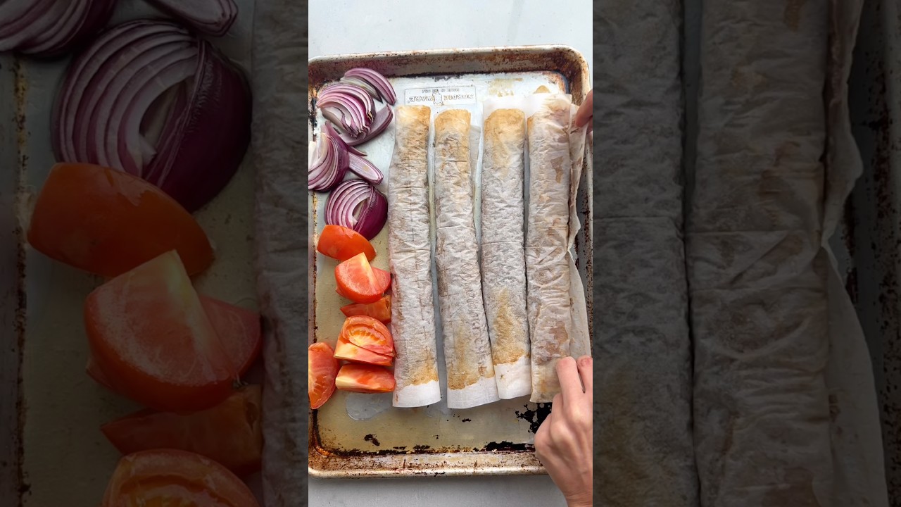 Have you tried the viral donor kebab? It’s a quick version to make the recipe in the oven with Greek yogurt. I’m using Stonyfield organic Greek yogurt made with 100% organic milk from pasture raised cows. It helps to tenderize the meat and keep it juicy in the oven. Rolling the beef mixture in parchment paper and baking it in the oven is such a genius hack for making the popular Turkish street food that’s normally made on a spinning stick and shaved off. The key is to make sure the ground beef mixture is moist by adding grated onion and Greek yogurt and not overcooking it. Then enjoy the thin slices of beef in a pa sandwich.