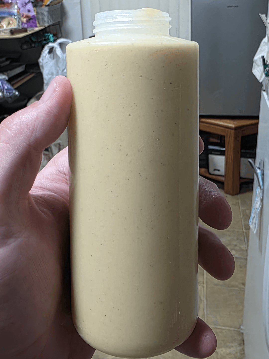 After pureeing all the ingredients, emulsify neutral oi while blending till desired consistency.