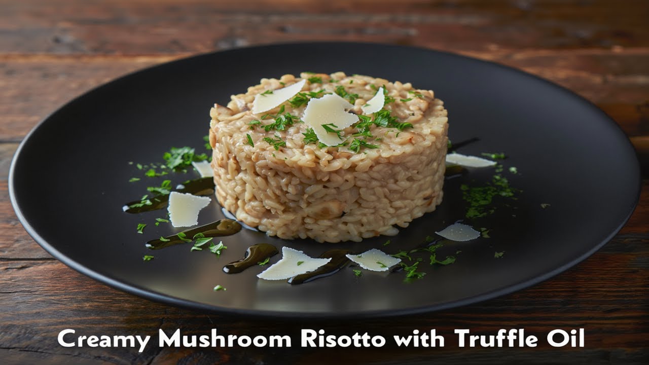 Today we’re cooking a rich and creamy Mushroom Risotto — a perfect comfort dish with deep flavors and a luxurious touch of truffle oil.