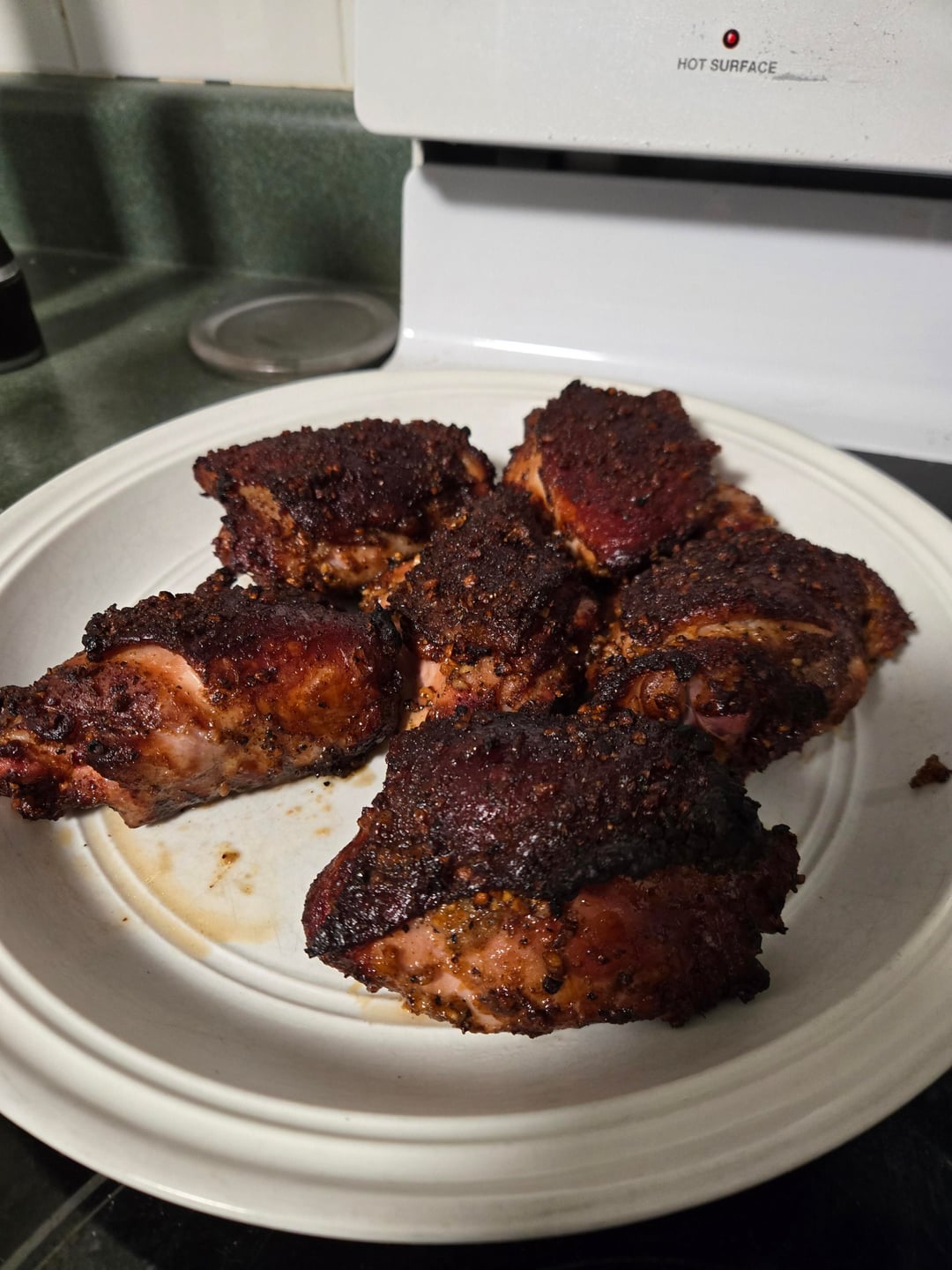 Smoked for about 40 mins in the kettle over lump and a couple chunks of cherry wood. Tasted incredible, but are these "burnt"?
