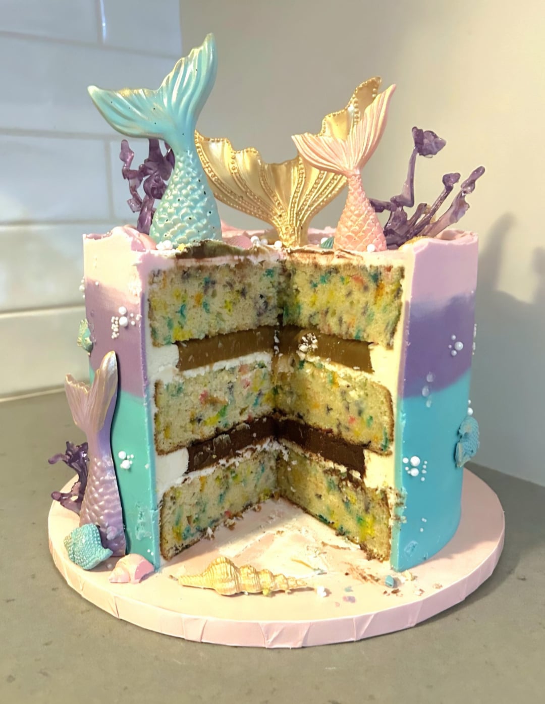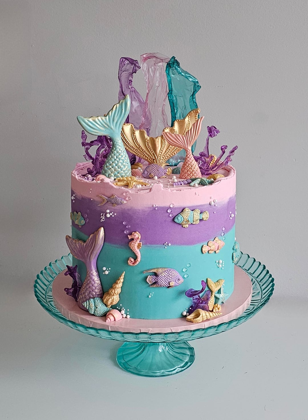 Share Facebook Twitter Pinterest LinkedIn Reddit Cousin requested a mermaid theme for this year's birthday cake, which I was thrilled about because I love making all the decor π₯° by Green-Cockroach-8448 12 Comments Special_Original_258 5 months ago Beautiful cake! Fictional-Wife 5 months ago That’s beautiful!!! jessicat_ak 5 months ago Your cousin will love it! The details are fantastic Amwc5160 5 months ago This is BEAUTIFUL!! What did you use for the three colored pieces in the back and the clear water drop/bubbles. Some type of hardened sugar? NewbieMaleStr8isBack 5 months ago Lovely chaun619 5 months ago This is so cute!! Beautiful color palette and clean work. What are the clear bubbles made of? Spacelady1953 5 months ago It is gorgeous Frosty_Animator_9565 5 months ago So beautiful! Aggravating_Pair_496 5 months ago Beautiful! Such skill CatPurrsonNo1 5 months ago So pretty!! Breatheitoutnow 5 months ago Wow! π€© thatβs beautiful GullibleCrazy488 5 months ago Best one I’ve seen!