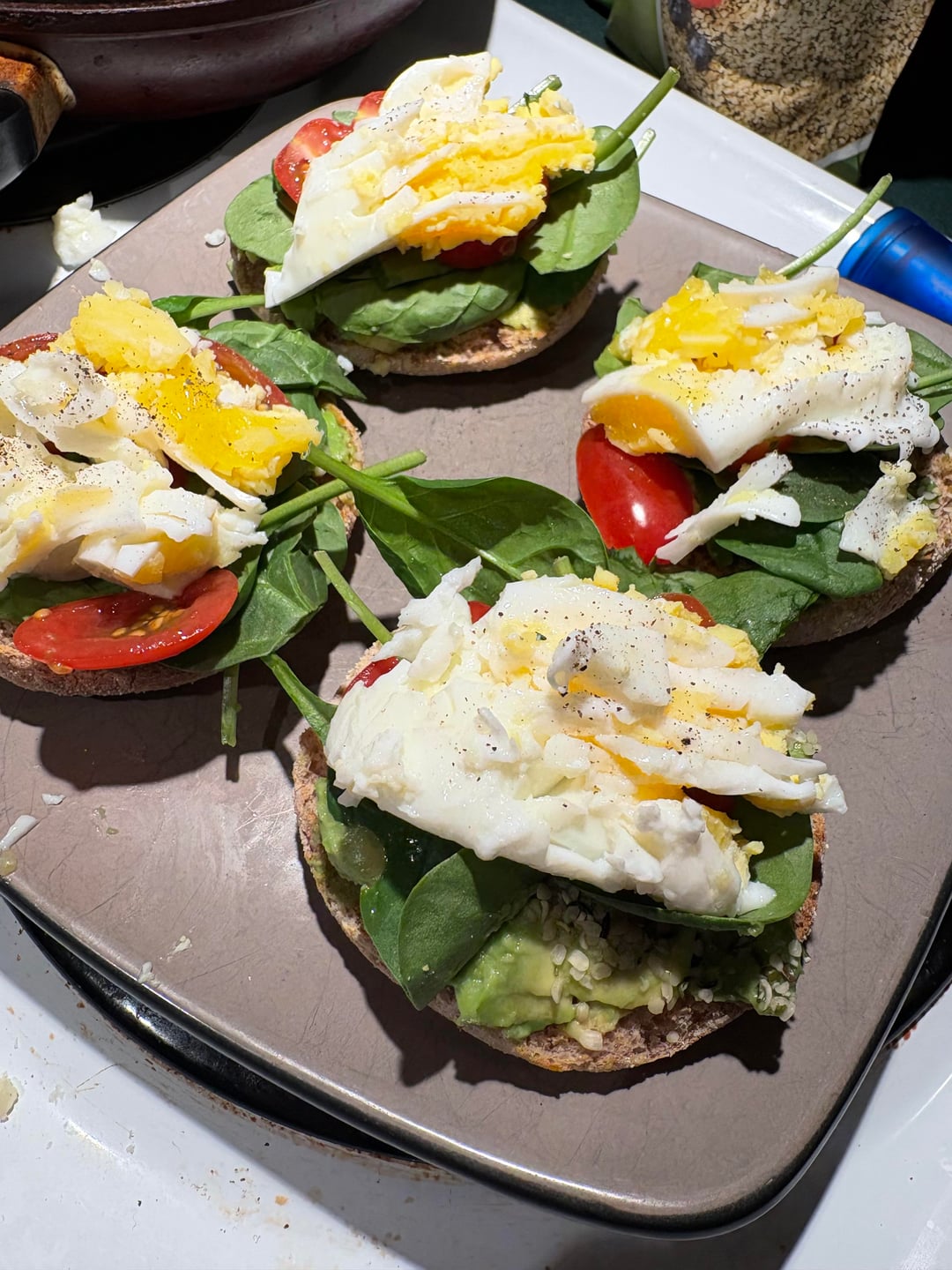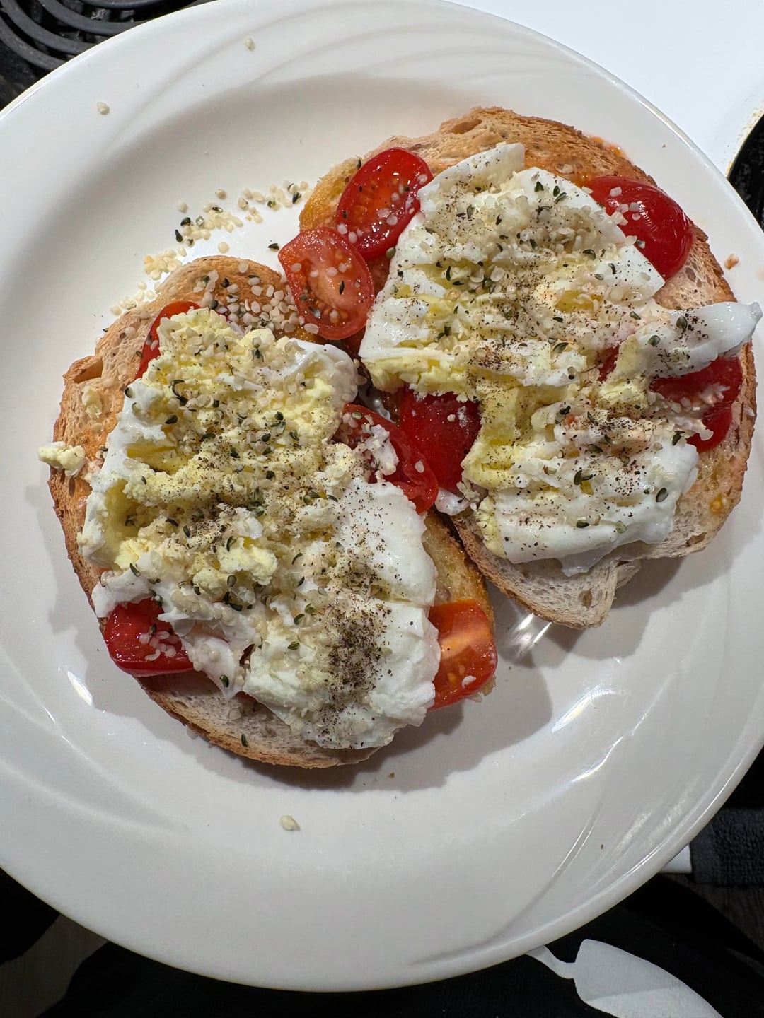Sorry they’re not the most appealing pictures! I mostly just take a quick picture send to my mom. Hemp seed hearts and evoo in every meal 😋
