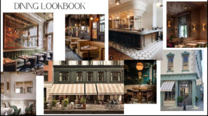 A collage of inspirational photos for Amata Italian Restaurant’s dining room is pictured. The fine dining restaurant, expected to open at 509 Main St. by mid-January, will follow an “eclectic European” style, interior designer Chase Hazard said. Courtesy of Florian Imeri
