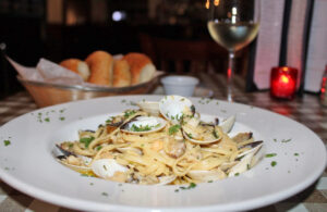 A plate of Chef Florian Imeri’s linguini alle vongole, a classic Italian seafood pasta, is pictured. Florian said Amata Italian Restaurant, expected to open next month along Main Street, will feature traditional Italian and Italian-American cuisine. Courtesy of Florian Imeri