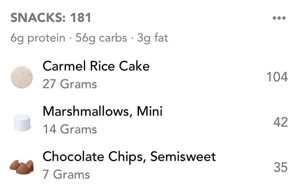 Use caramel rice cakes, top with mini marshmallows and mini chocolate chips. Bake at 350°F for 5 minutes. So good 10/10 satisfies my sweet tooth!by OkAssociation2342 1 Comment Standup4whattt88 3 months ago Yum!!!