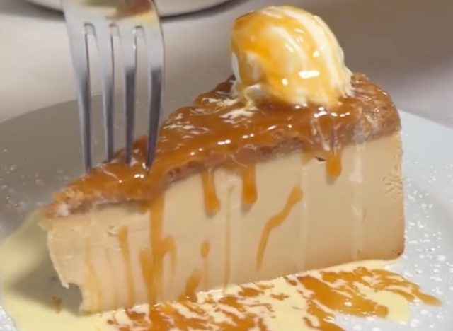 A steakhouse might not be the first choice for cheesecake, but according to Chef Corrie, LongHorn Steakhouse should not be dismissed for dessert. At $10.49 per slice, THE Cheesecake is pricey, but it’s worthwhile. “The crust is a classic graham cracker, but the best part is on top: a lot of caramel, some salty-sweet candied pecans, and a dollop of whipped cream,” Chef Corrie notes. ” It has the right amount of creaminess, crunchiness, and sweetness.”