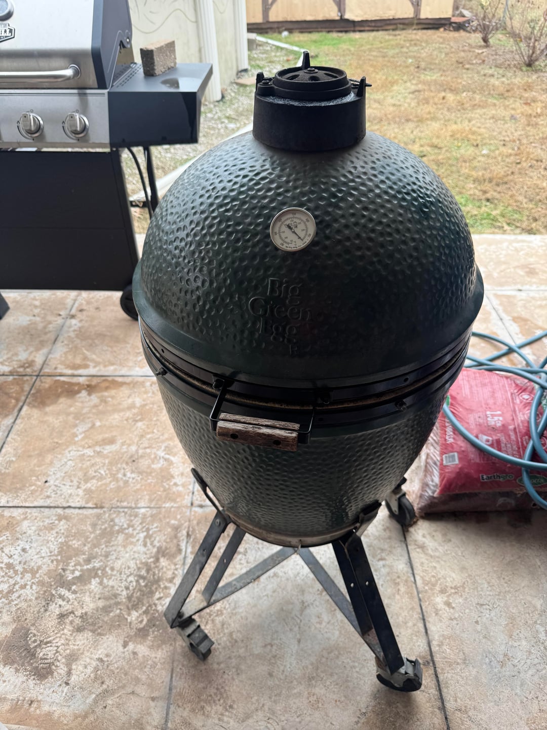 Congratulations and welcome to Big Green Egging! I would look at Captain Ron on YouTube to fix your band problem. You can use Acacia or any other wood on your Egg mates. BGE uses Acacia for their Egg Mates. Lastly, only use lump charcoal for your egg. BGE suggests using lump plus it is healthier and burns cleaner. Enjoy your egg!