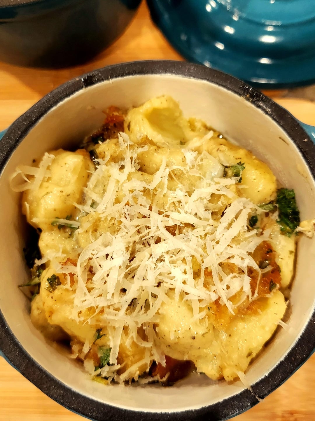 Gnocchi baked in a sauce made with silken tofu, vegan mozzarella and boursin, cashew cream, and oat milk and topped with vegan croissant "crumbs" and Rebel parmesanby slh2c 1 Comment Fuzzy_Welcome8348 2 months ago Looks amazing!