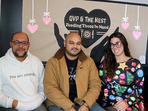 Free, Christmas Day dinner, Quo Vadis Pizzeria, ChathamMichael Day, left, Harshana Fernando, and Kristy Gold, right, are teaming up to organize a free Christmas Day dinner at Quo Vadis Pizzeria in Chatham for a second year. The restaurant will be open from noon to 3 p.m. Dec. 25 to welcome anyone who wants a free holiday meal. PHOTO Ellwood Shreve/Chatham Daily News jpg, CD, apsmcArticle content