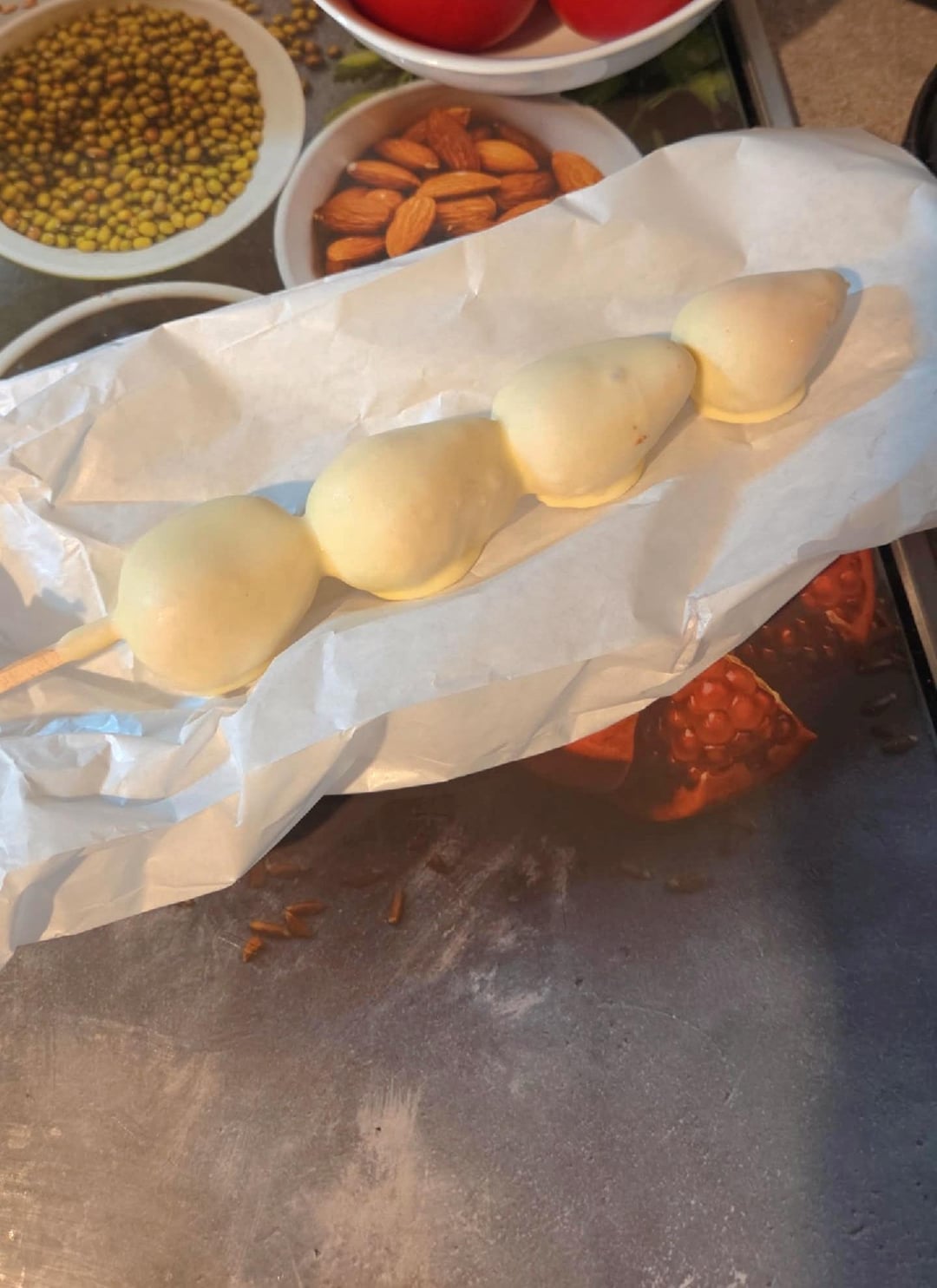 133gby livisaa11 1 Comment Euronymxus 3 days ago 5 average strawberries weighs about 65grams 22 calories 67 grams of white chocolate 370 calories total calories = 390-400