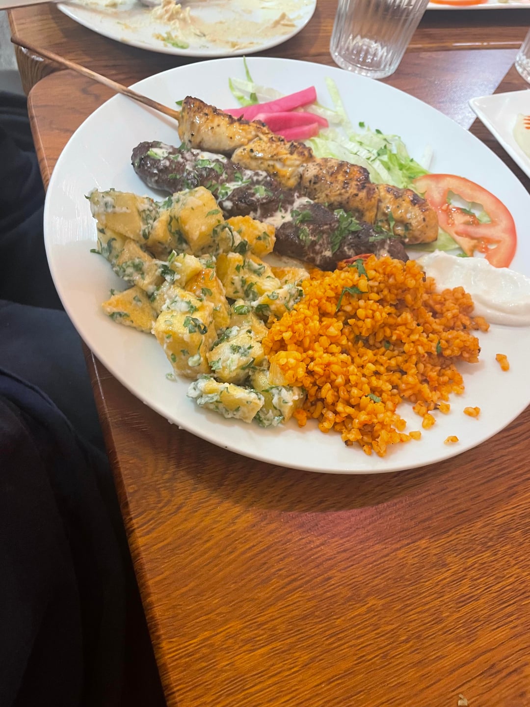 4 mezzés chaud et froid: Hommos, Moutabbal, Samboussek, et Falafel Taouk et Kefta: accompagnés pinned de terre à l’ail et blé a la façon libonaise . Près RER B Luxembourg à paris