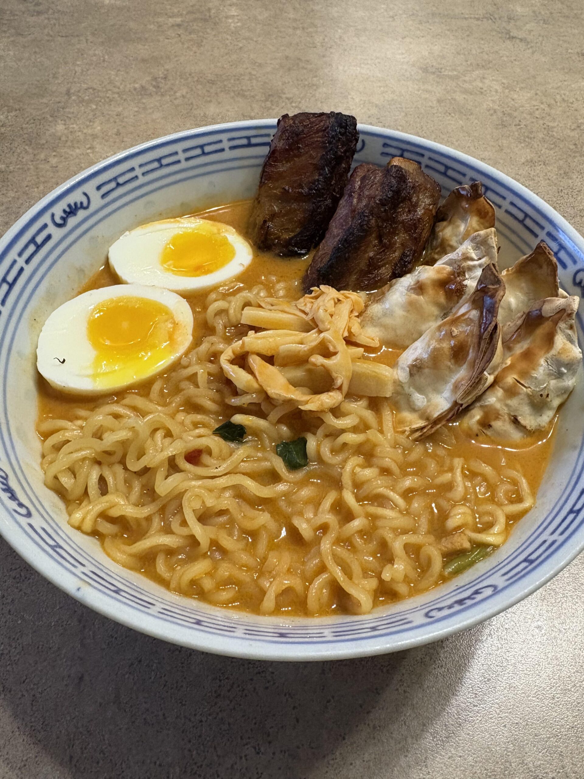Shin Ramyun with a bunch of add onsby TheChocolateCreed 2 Comments hezaa0706d 1 week ago Gyoza in the ramen hmmm Fuzzy_Welcome8348 1 week ago Dumplings in ramen is underrated. This looks awesome 👏