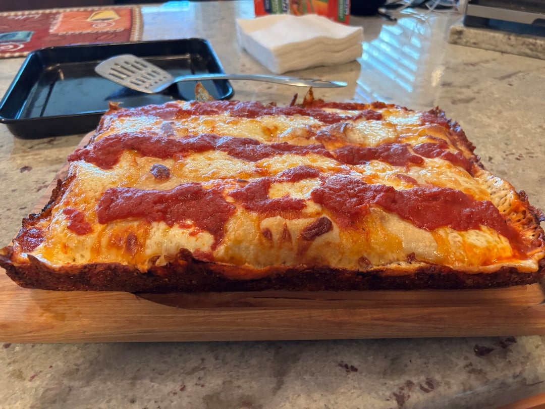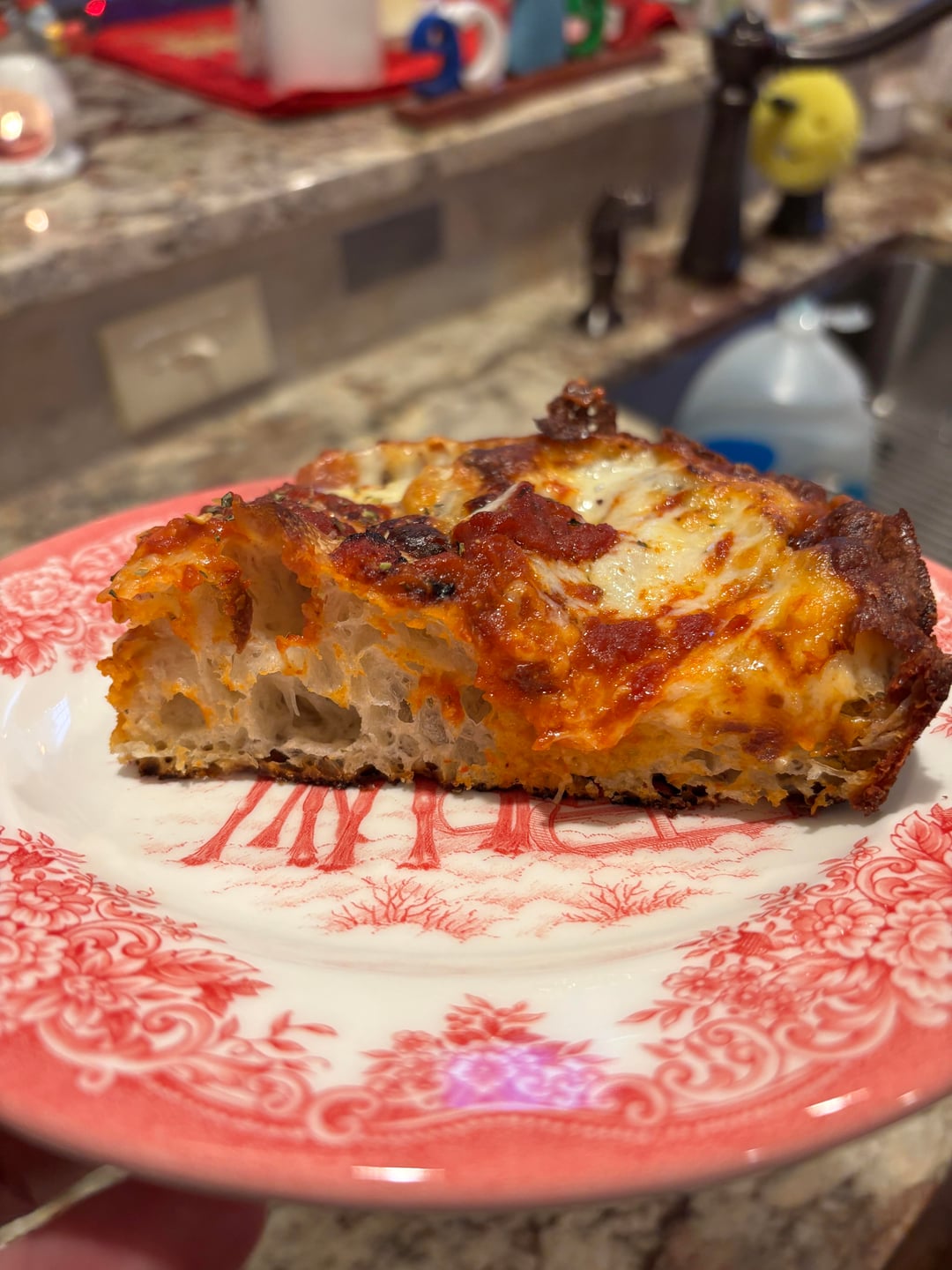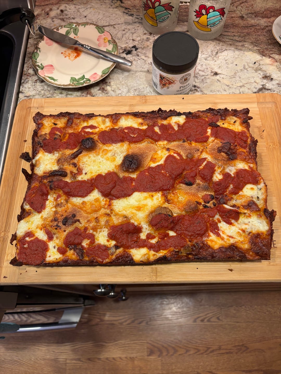 The pan pizzas were harder. I tried proofing them in cookie sheets and transferring to my one Lloyd’s pan. That proved way more difficult than useful. They’re pricey but when I do it again I’ll prob get maybe two more pans. I’ve been meaning to pop around YouTube to see if there are any videos of commercial spots that show their process. I remember one from Best Pizza but I really think the solution is multiple pans.