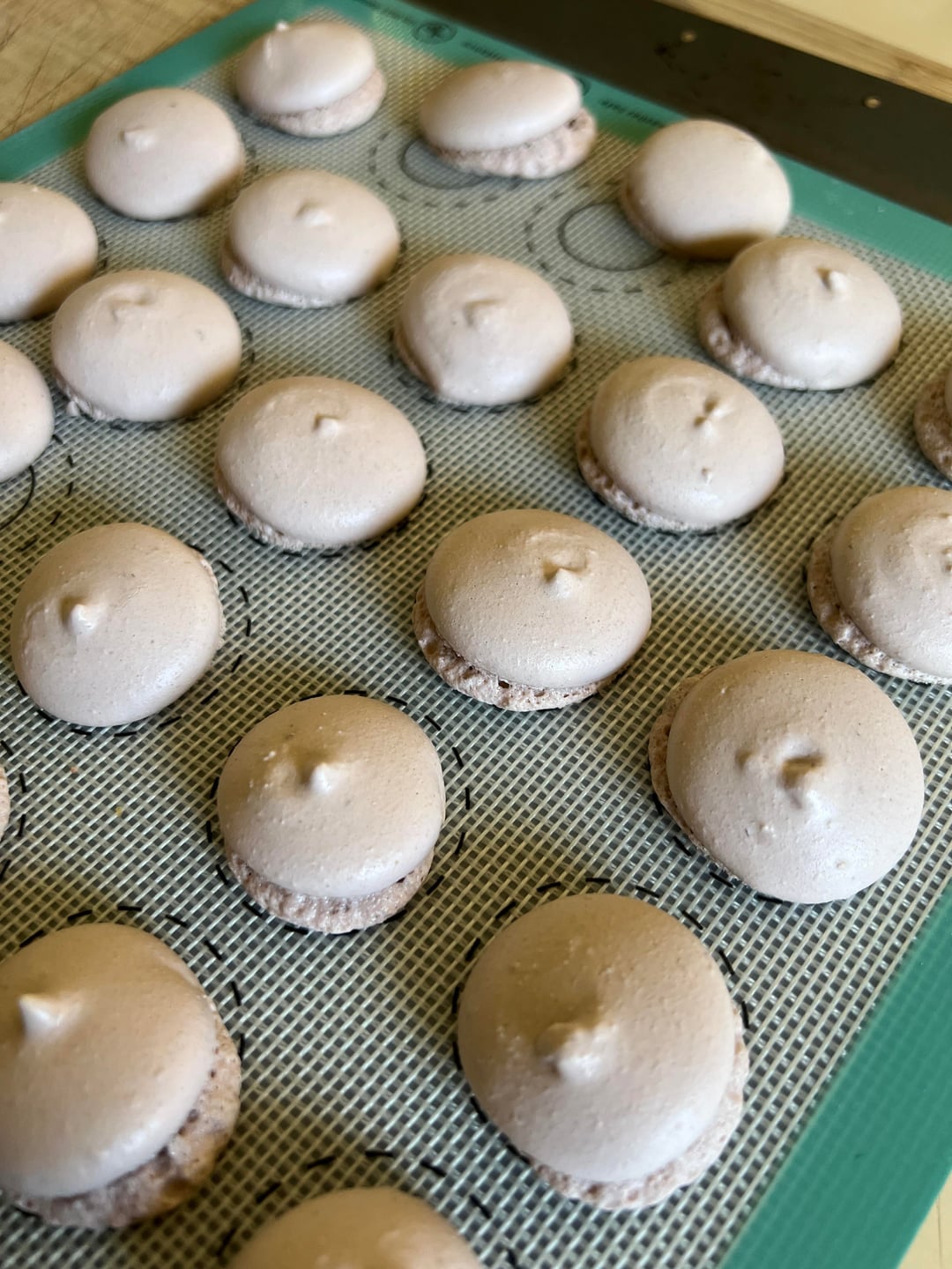 Meringue is def over whipped 😅. Also, you could’ve macronaged a little more (since the macarons have “nipples” it tells me it was under-mixed) maybe unstable temp too? There’s so many factors!!