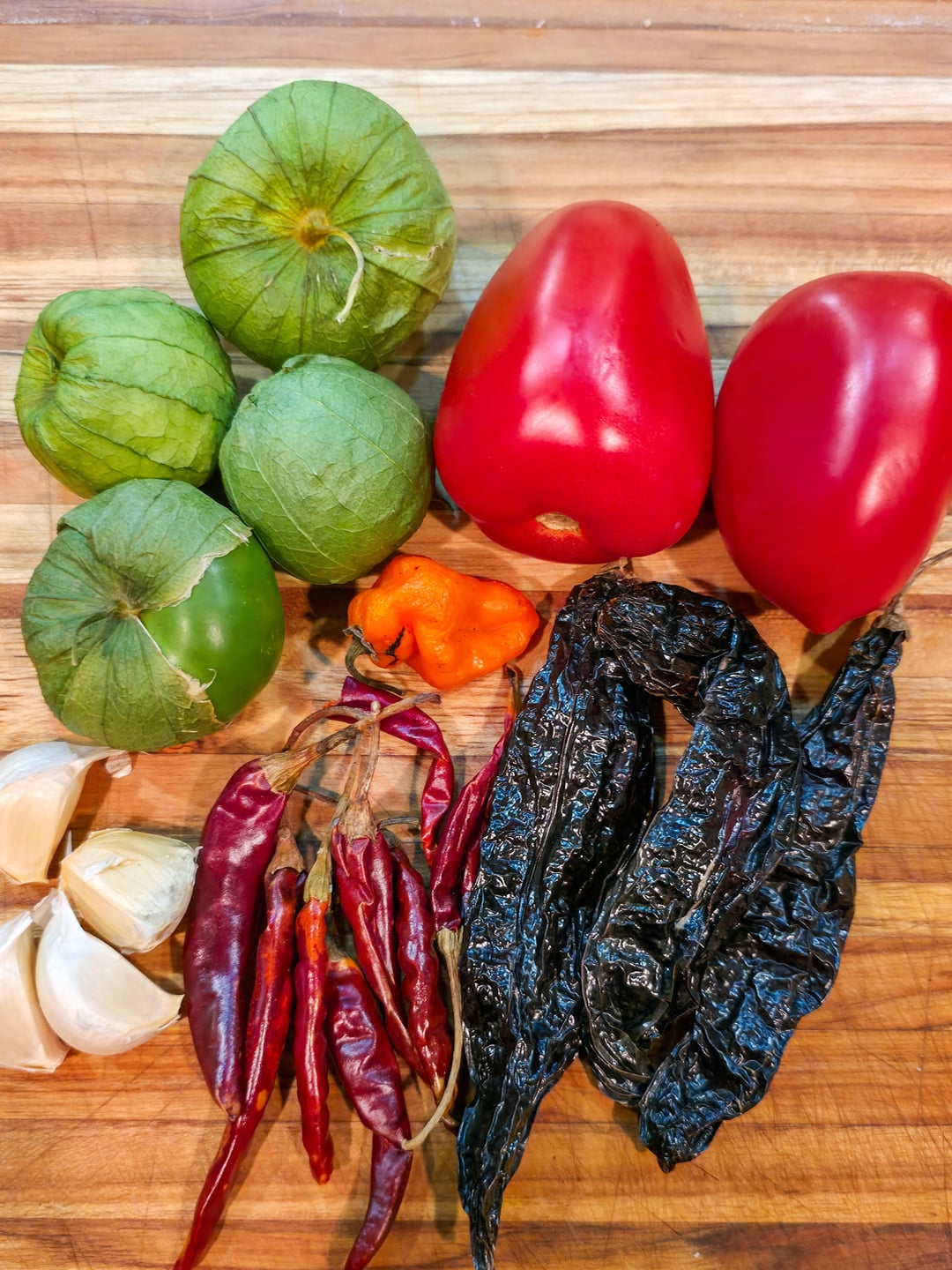 * Toast pasillas and arbols on stove just until fragrant. Set in small bowl.