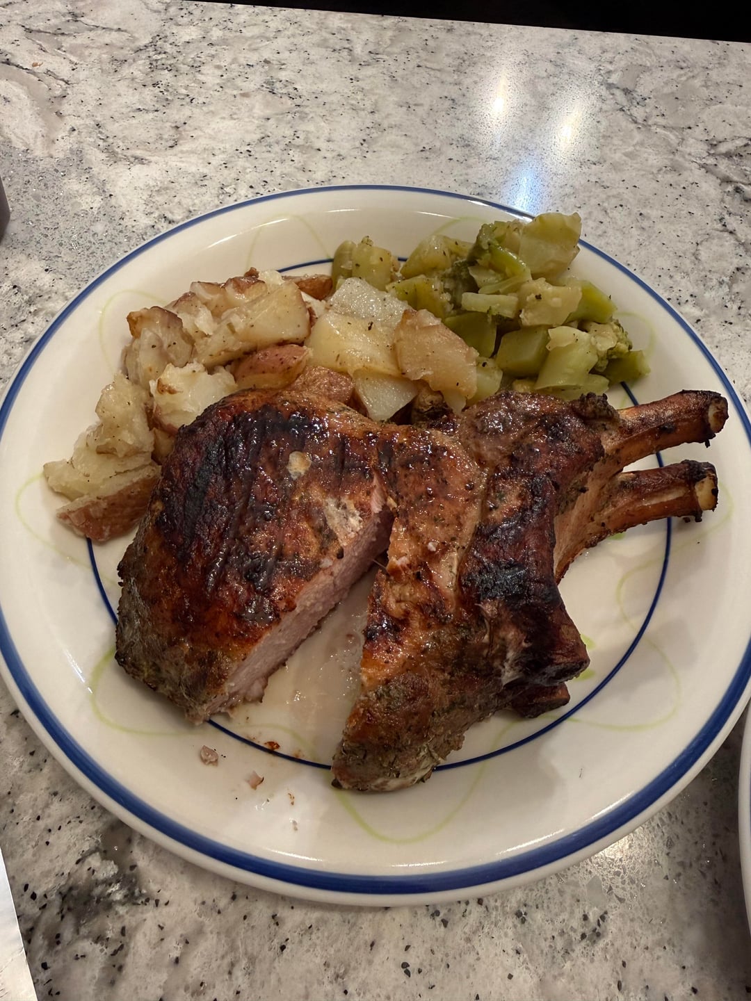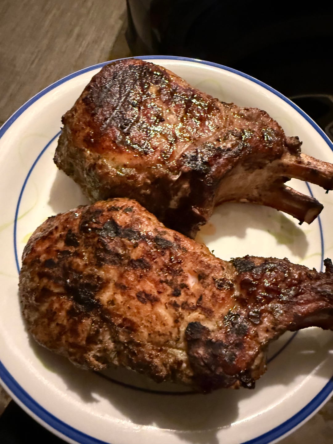 Pork chops on the kettle tonightby ChapterOk7618 5 Comments NMUWildcat 2 months ago Very nice!! Exciting-Bid6590 2 months ago Looks good. solidstate42 2 months ago Did you wet brine? thickbolognese 2 months ago Looks like the ones I get from Wild Fork! markbroncco 1 month ago Oh man! That’s a fine pork chop right there!How do you like the Woolly Bully cover so far? Pretty dang good?