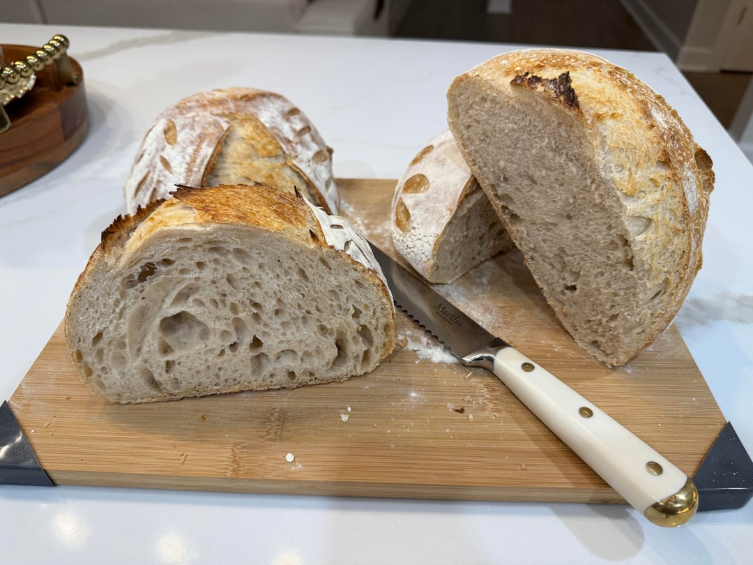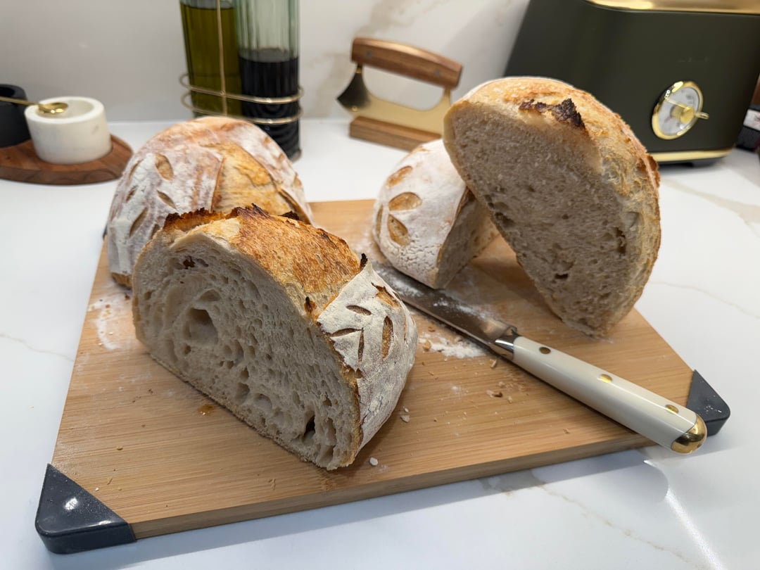 How did I do? My very 1st loaves.by Nice_Cup_5392 7 Comments lemonorzo333 1 month ago First?? Rude! Nice_Cup_5392 1 month ago Hahahaha phew I’m new to posting and sourdough!! Got a little butt hurt 🤣 I’m so proud of my 1st attempt! Thanks for your comment!! Sharp-Ad-9221 1 month ago 👏🏻👍🏻😊Now you’re hooked! Qazdrthnko 1 month ago you must be a good student NoyPi_Bogli 1 month ago Did you made your own starter? Nice_Cup_5392 1 month ago I also used KA BF for both my starter and baking! Good luck!! Codename_Cyan 1 month ago I am jelly!