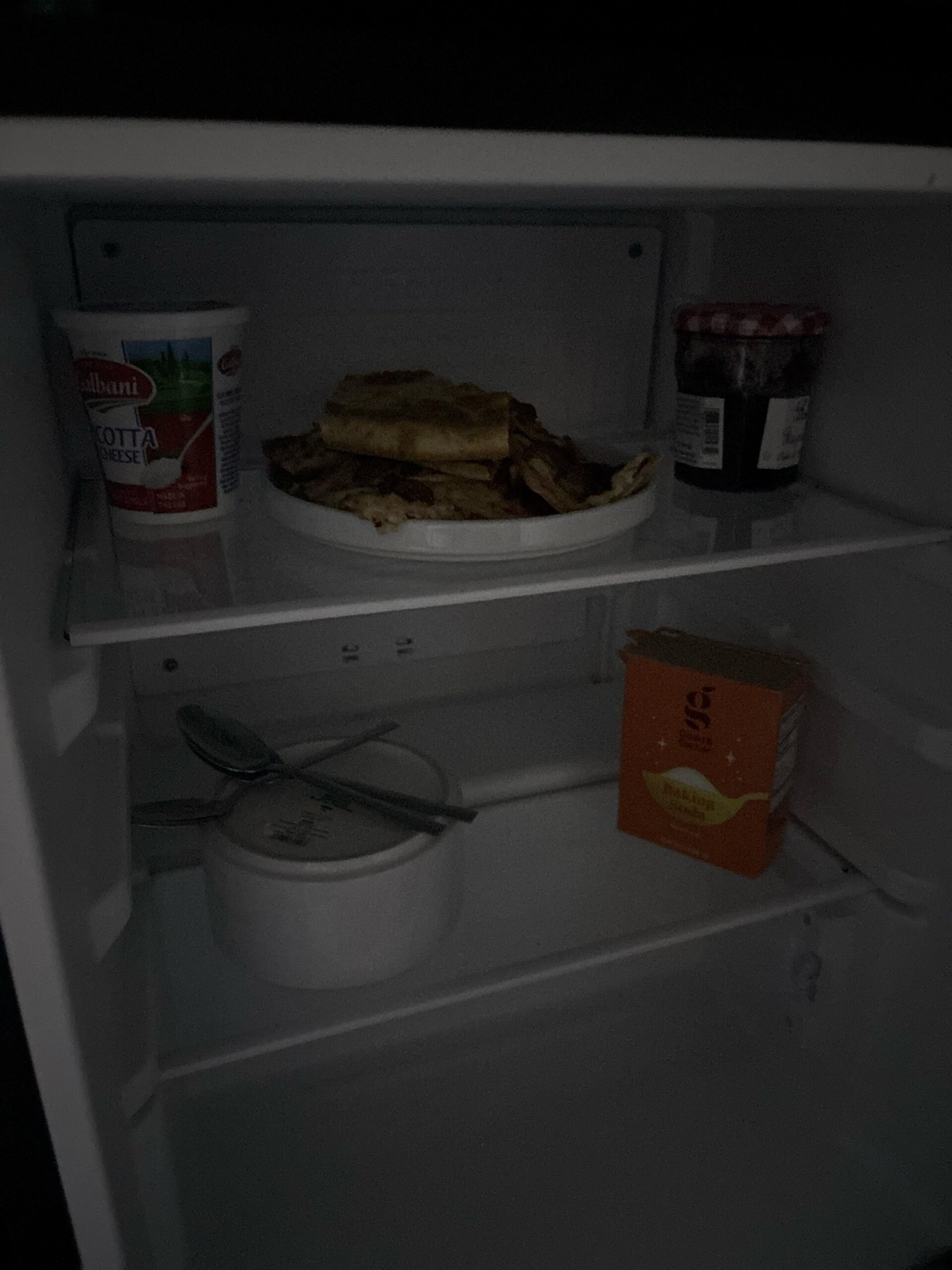 There’s something beautiful about this post to me. I don’t know if it’s the lack of lighting, or the composition and selection of the few items we can see in the fridge. It says so much, while saying so little. Like an accidental renaissance