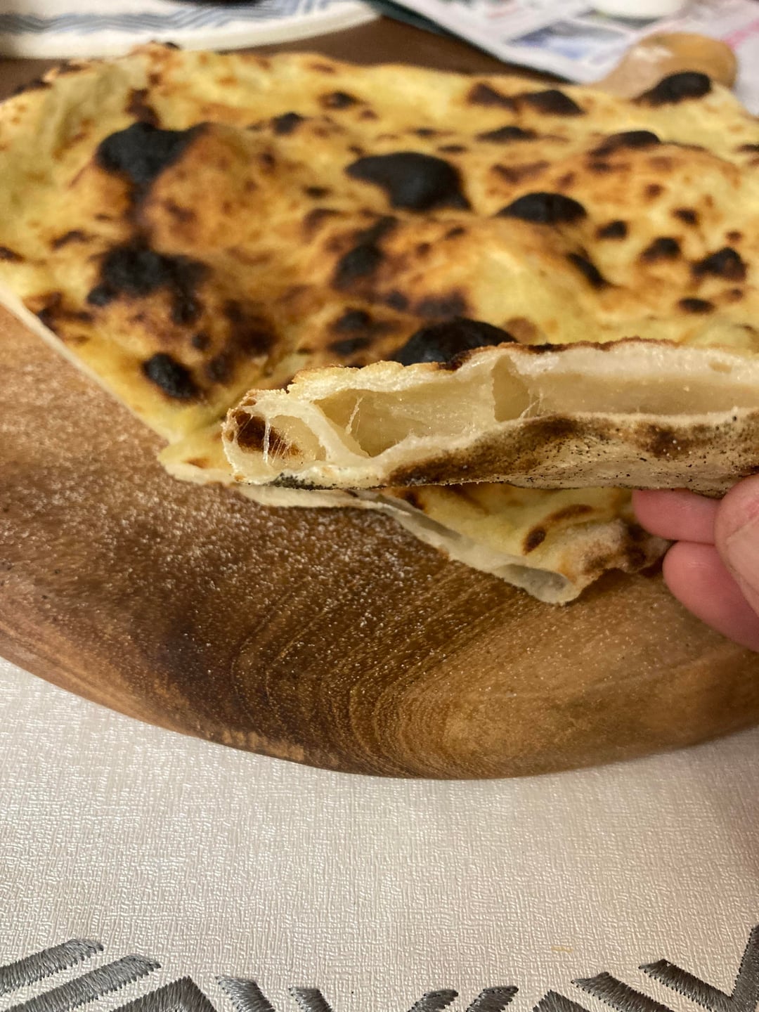 Handmade 122% hydration success! Dough is very soft and airy 🙂 made a margherita and pizza bread. Used scalding + autolyse to achieve super high hydration.