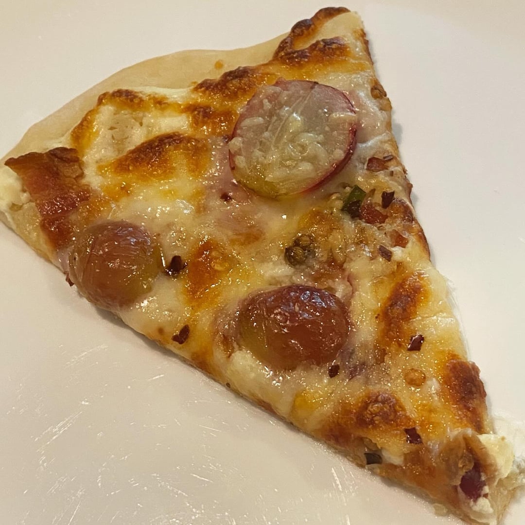It might be a pizza crime, but it was tasty. The grapes were pickled with jalapeño and spices like mustard seed and cinnamon. Pizza topped with ricotta and mozzarella.