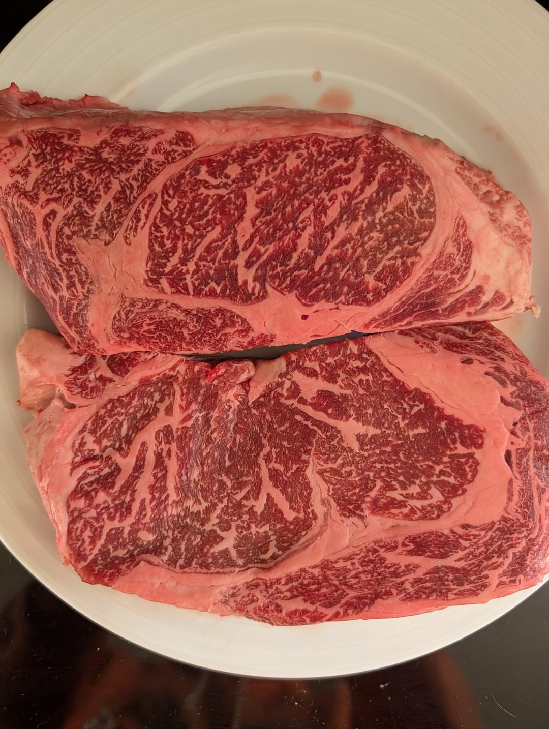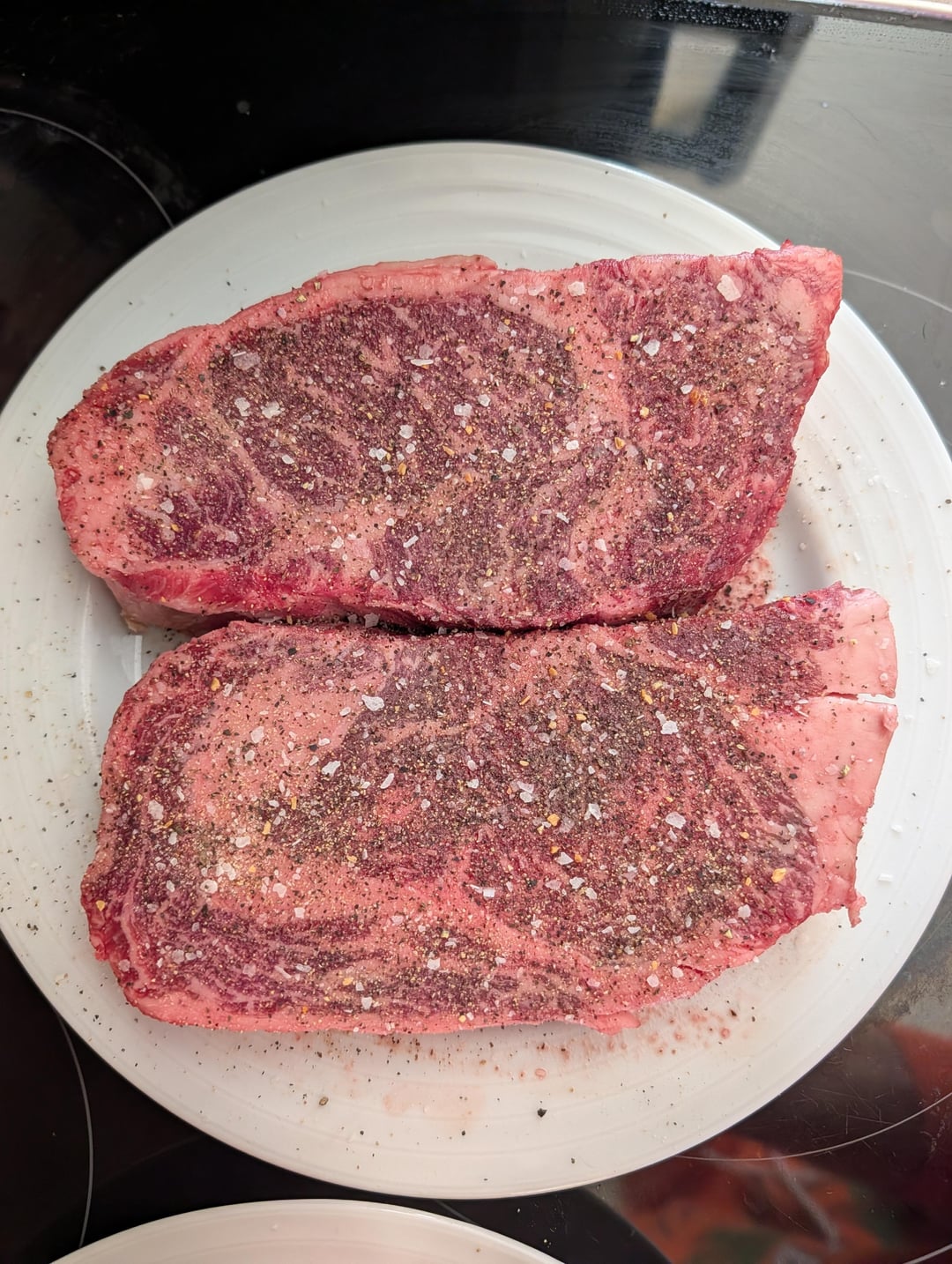 Do not take your eyes off those steaks while cooking, with that much fat, you could have an inferno on an open grill. Look forward to the final pics.