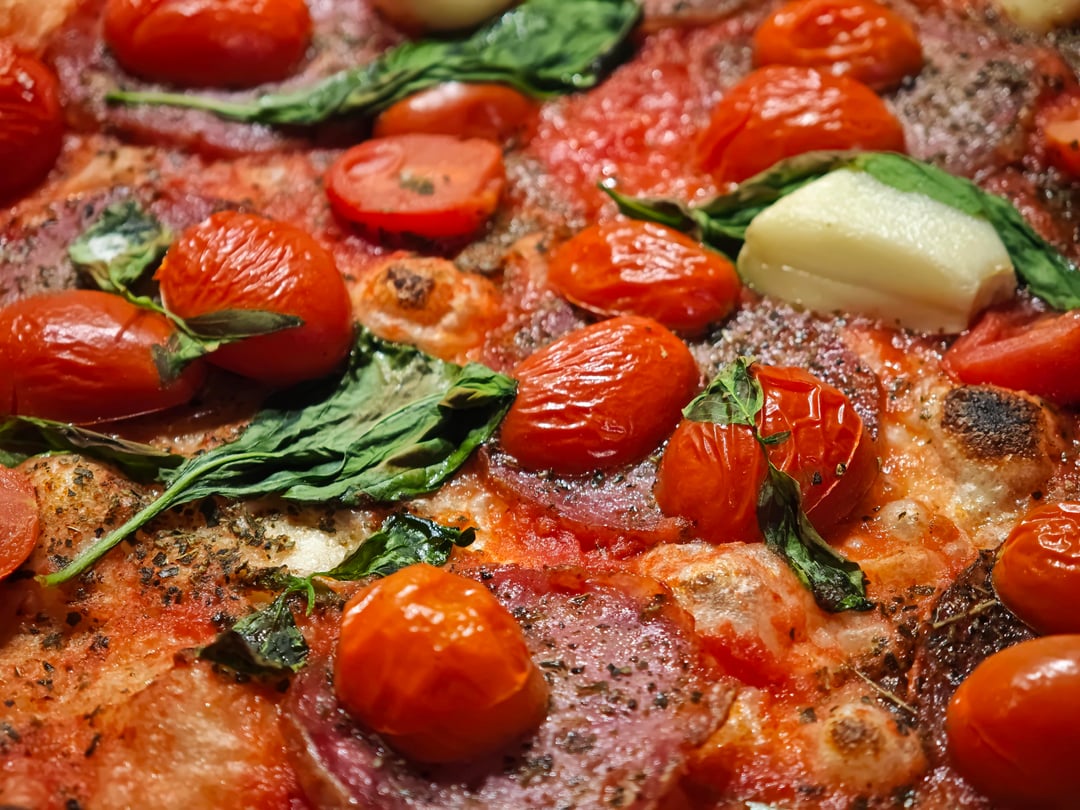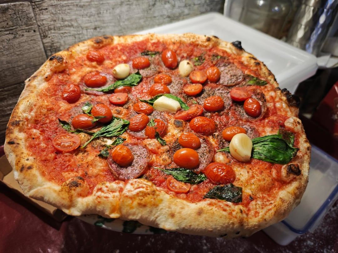 I personally would have done thinner slices of garlic and covered more of the pizza, in a garlic fiend but I don’t always want to chomp down on an entire clove. But the pizza looks fantastic
