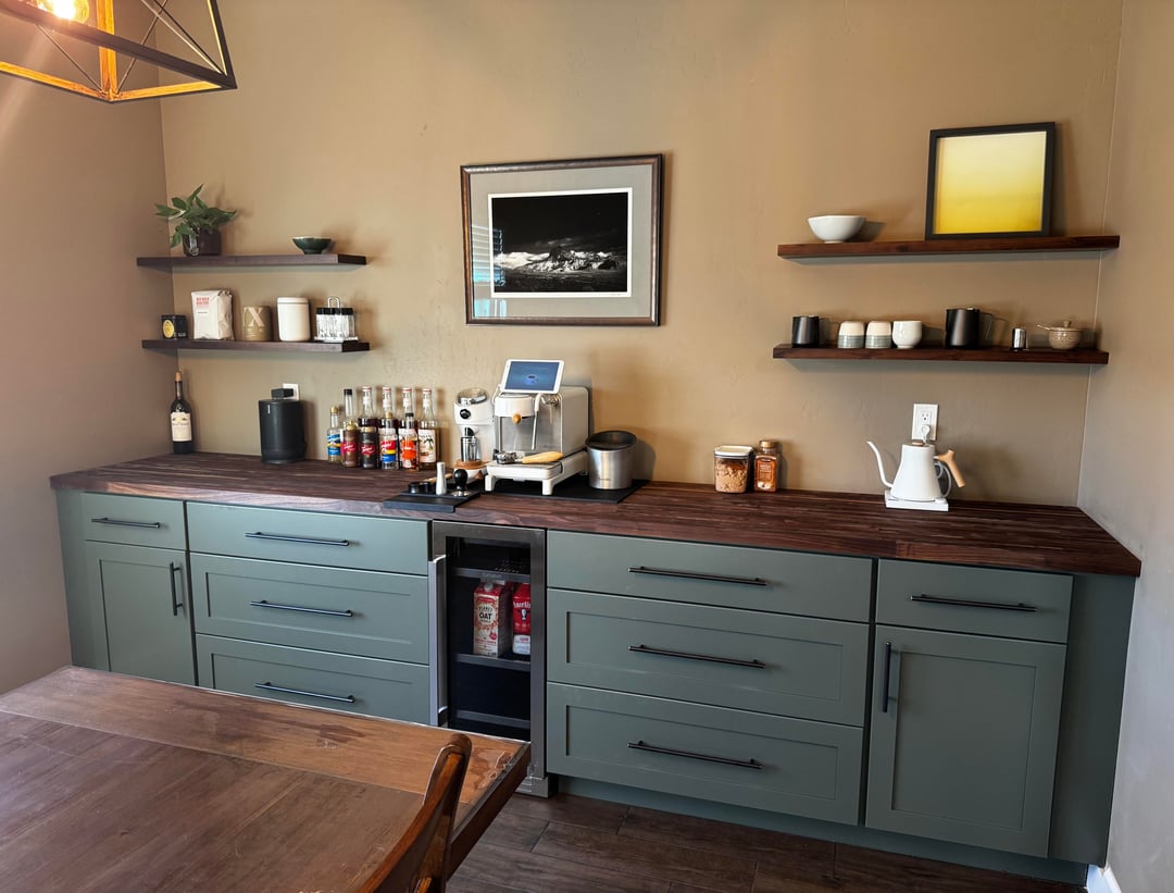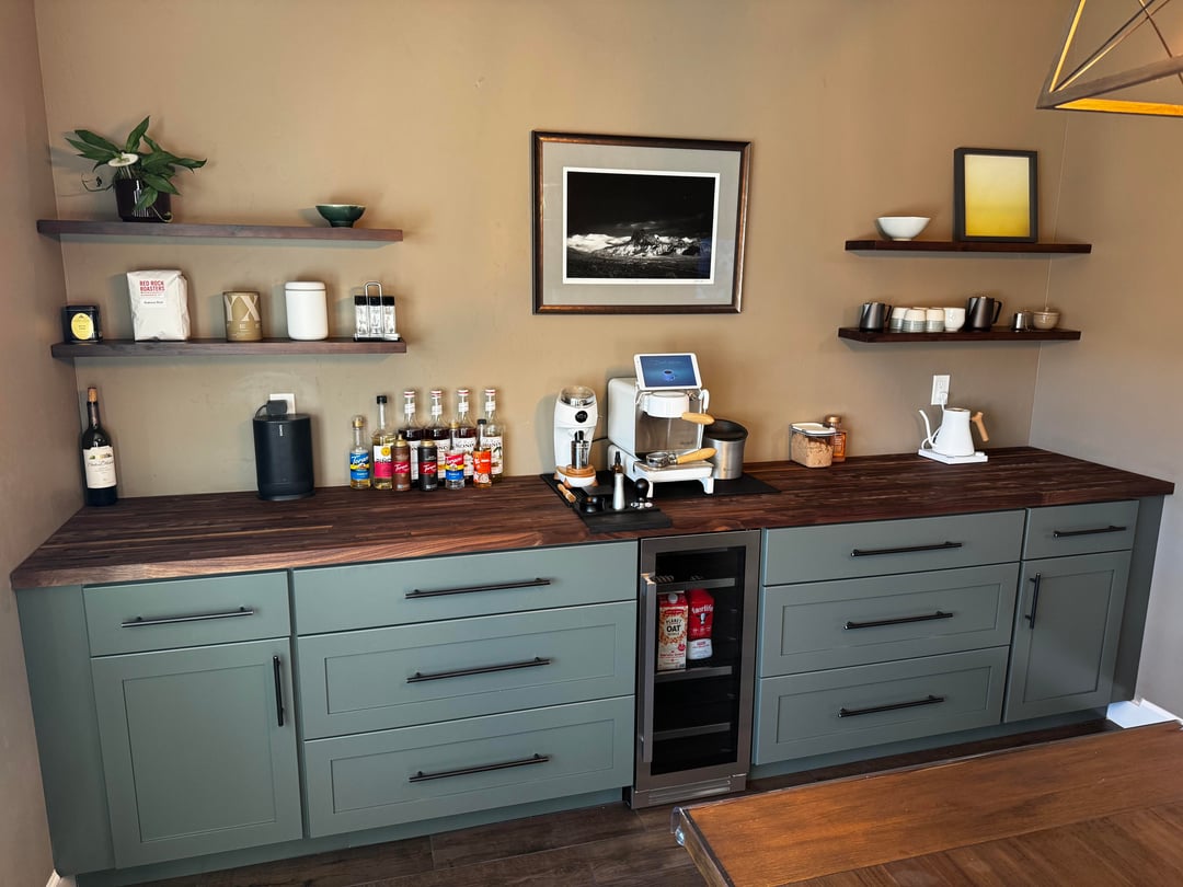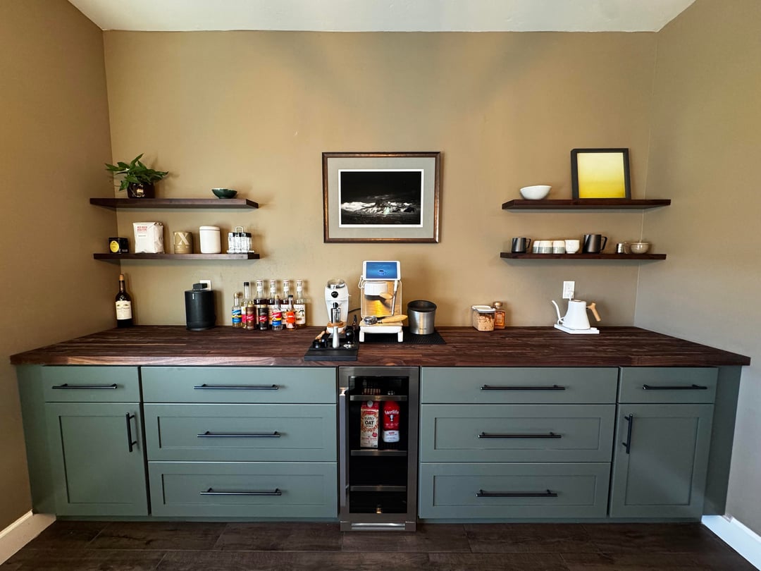 I wanted to share our finished coffee bar! I was inspired by the many setups posted on here over the years. We had a weekend with the kids at the grandparents and took the opportunity to knock this out! It wasn’t practical to get plumbing to this location of the house so a sink or plumbed machine were not in the cards, but so far we have really enjoyed the new setup. I’ve got a few finishing things to work on, but it’s 95% complete. The last photo is a before photo.