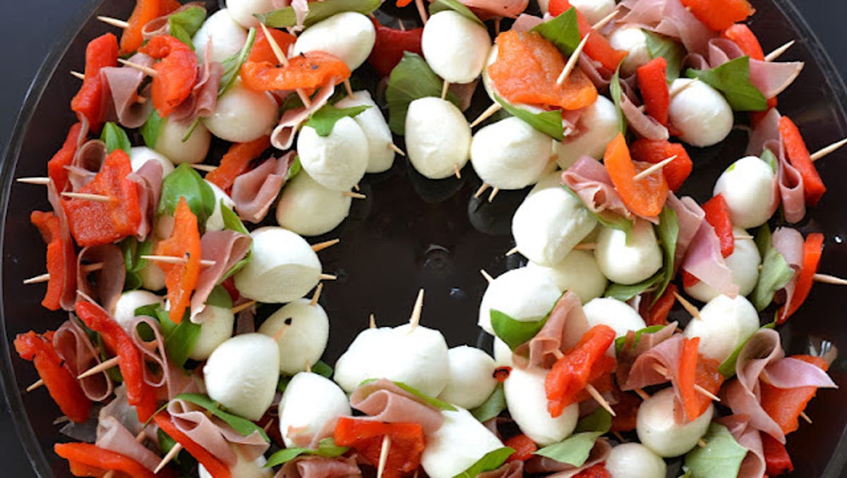 Original versions of this recipe include mozzarella, tomato, and basil for an alternative take on a Caprese salad. I chose to kick it up a notch with roasted red pepper and prosciutto instead. These are the perfect mini-bites for your next get-together, and the “recipe” couldn’t be easier!