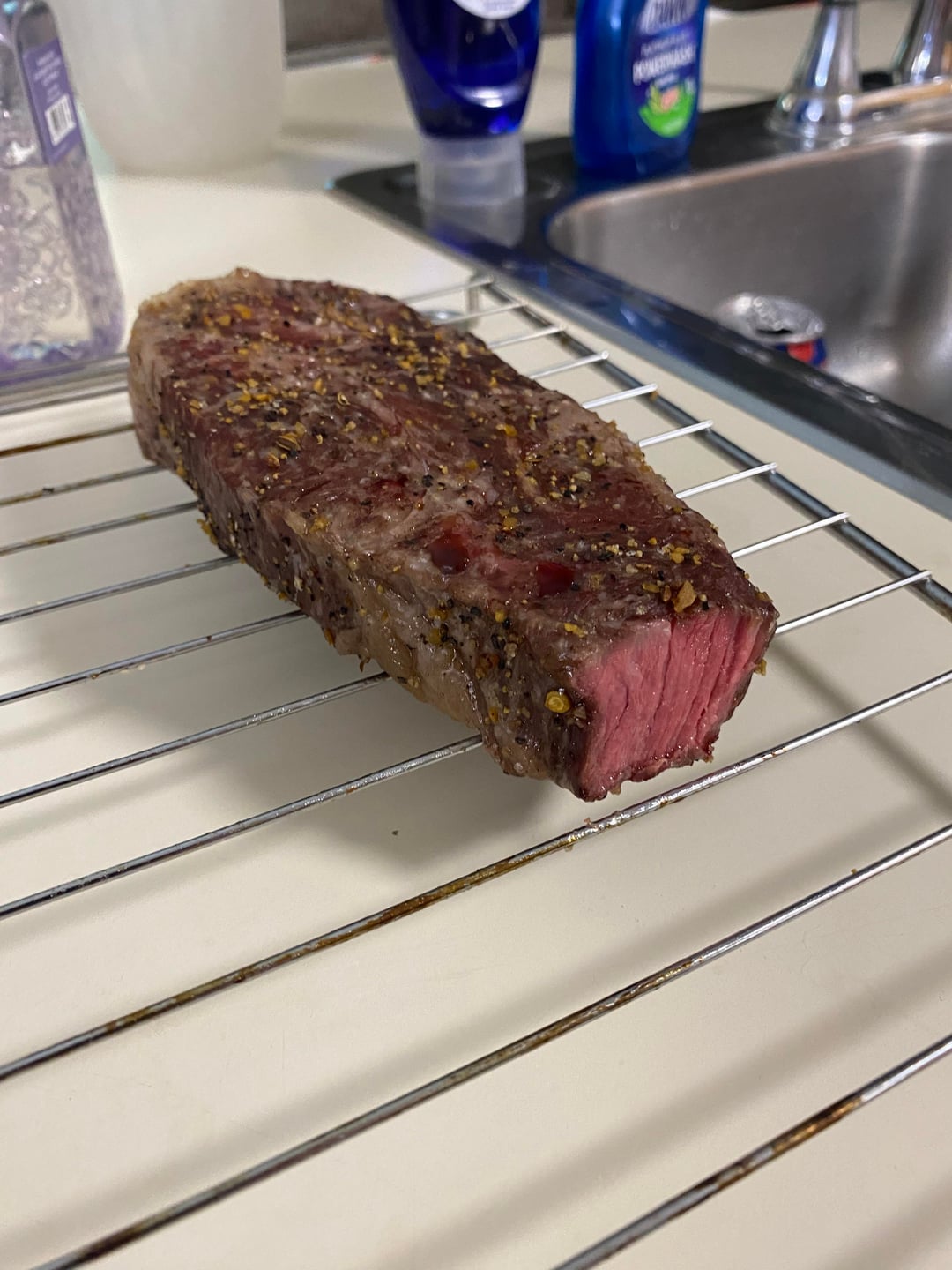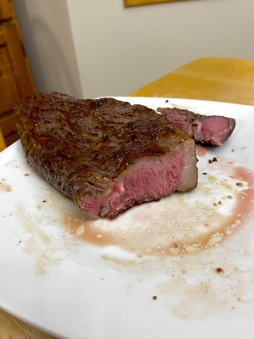 I wish I pulled it a little sooner… used the reverse sear method I was hoping for medium rare it was about perfect before the sear.by Expert-Edge-424 1 Comment Northcoast91 3 months ago Looks like it’s still mooing to me but as long as you liked it is what matters I guess…