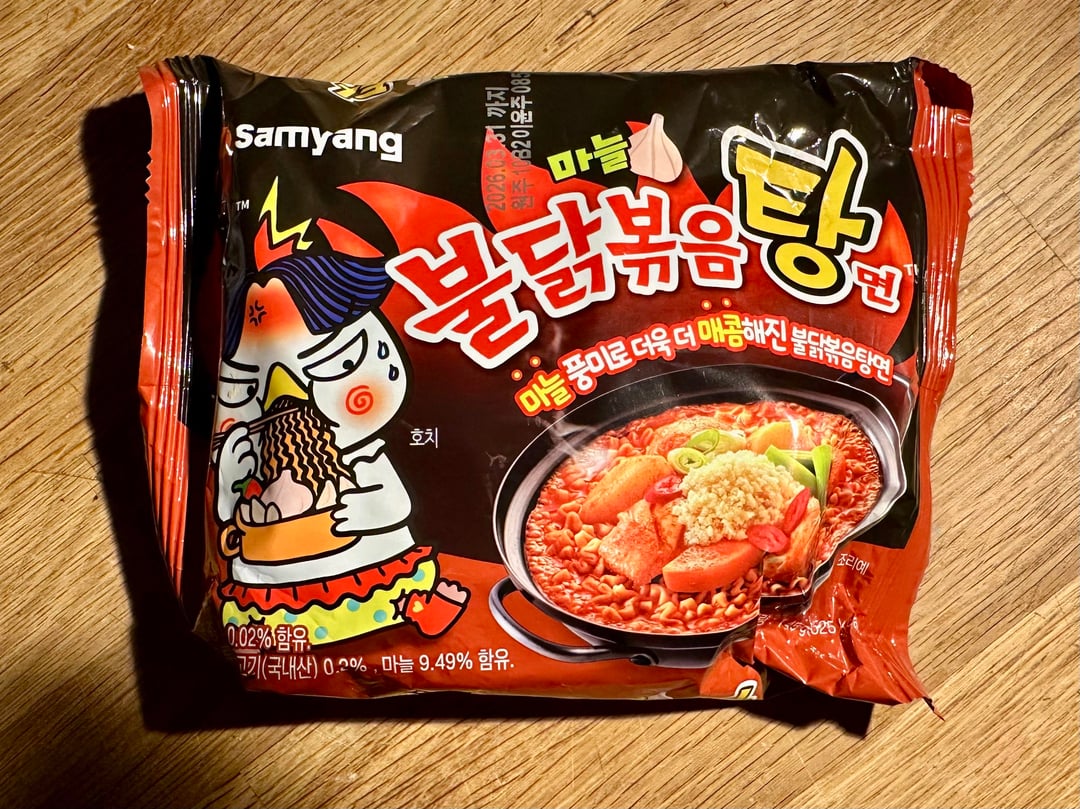 Someone brought it back from Korea. I have tried half a dozen Buldak flavors and it’s the first time I see this. I love garlic so I was curious to try. Disapointment! Weird bitter taste. Faint chemical garlic flavor. Heat level closer to x2 than to the regular one.