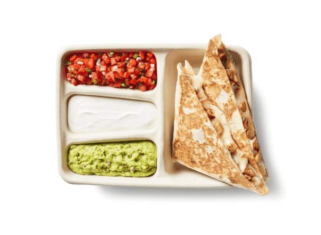Chipotle has quesadillas on the kid’s menu, but if you want the adult version, you can only order it via the app. “Chipotle quesadilla is good,” writes a diner. Rachel Kirk, recipe developer for LaughingSpatula.com, is also a fan. “Specifically, I chose the Chipotle quesadilla because it’s such a good deal when you want something satisfying, but not overly huge,” she says. “You get a quesadilla, two sides, a small bag of chips (or a piece of fruit) and a beverage.”
