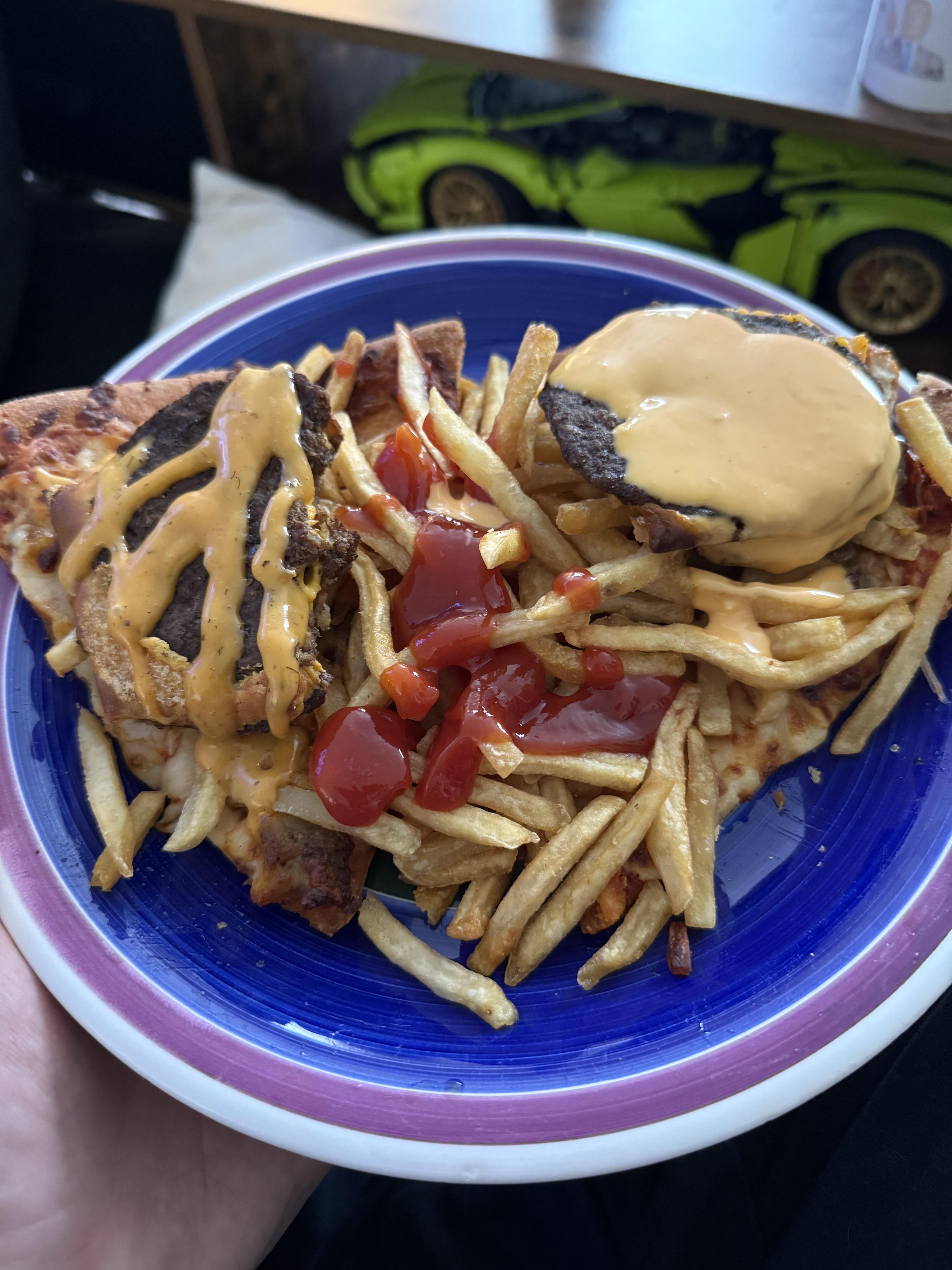 Talk about food waste… Just ruin perfectly good pizza or burgers by mixing them together