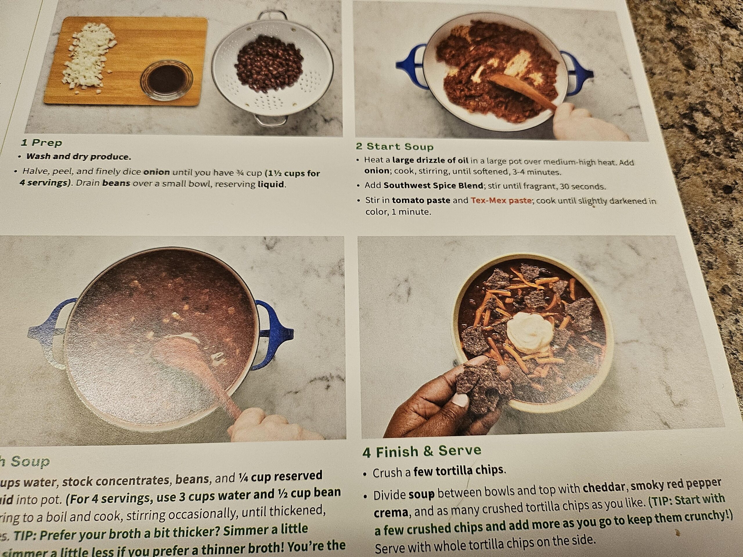 This is one of my favorites that I ordered every time it was available. Took maybe 15 minutes it’s total to make. I never bothered draining the beans, just added the whole can to the pot.